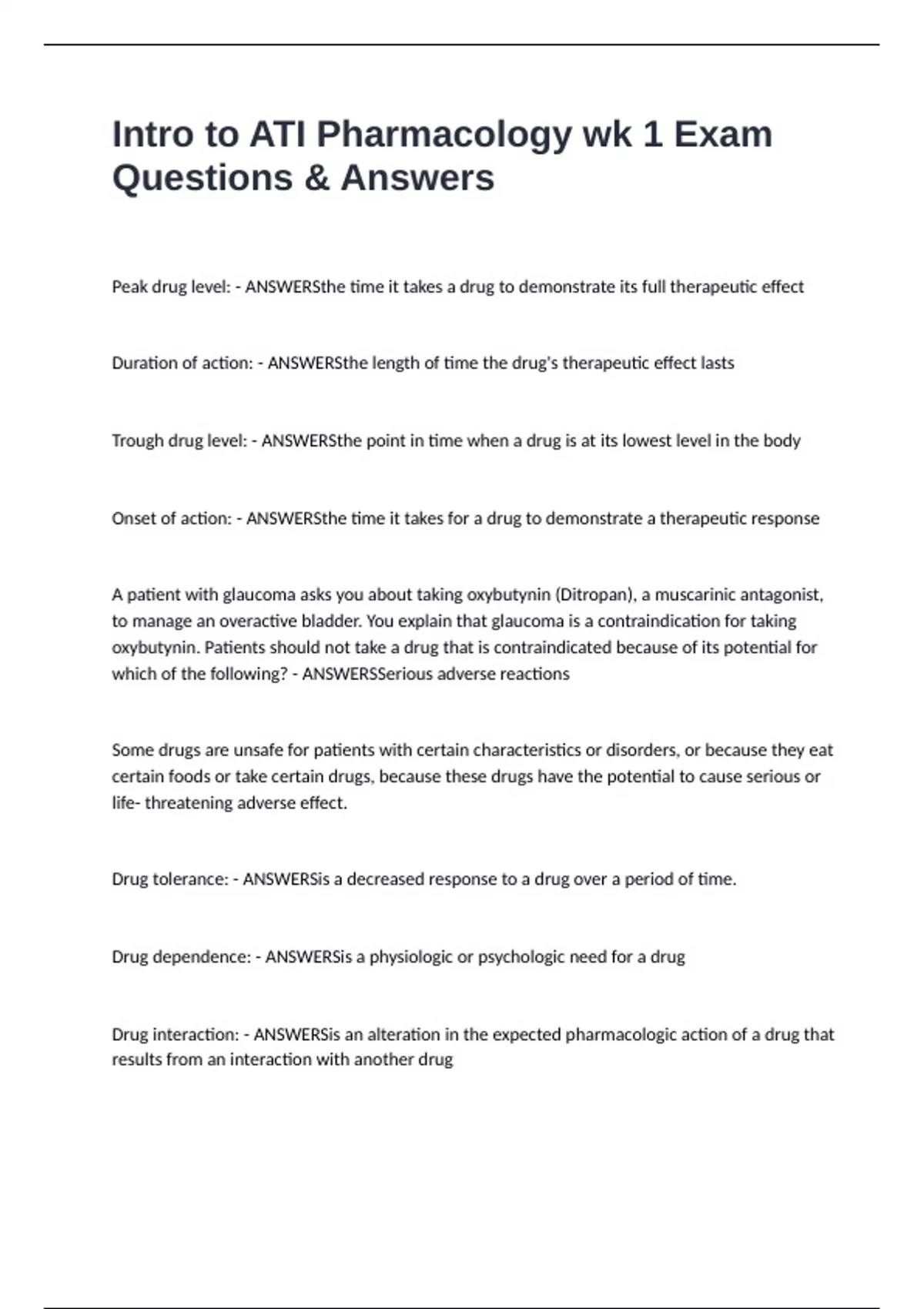 Intro to ATI Pharmacology wk 1 Exam Questions & Answers