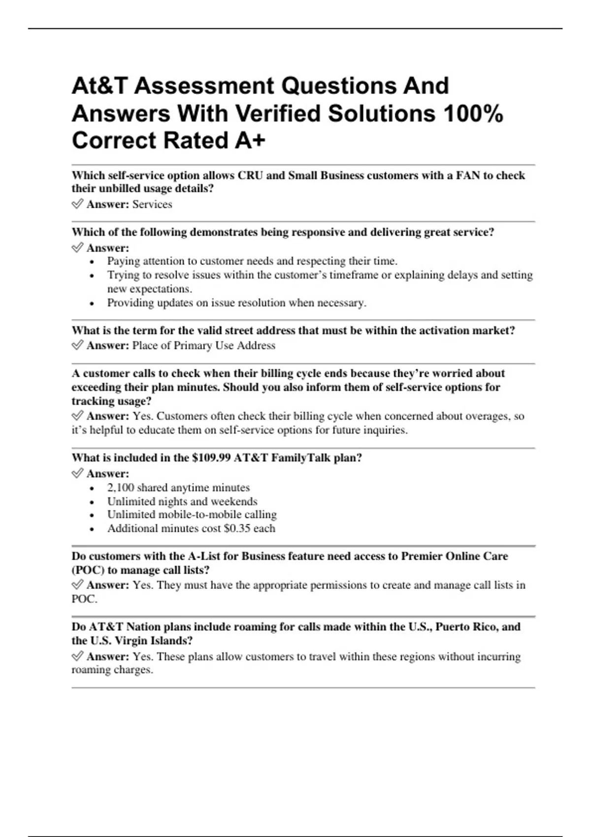 At&T Assessment Questions And Answers With Verified Solutions 100% Correct!!!
