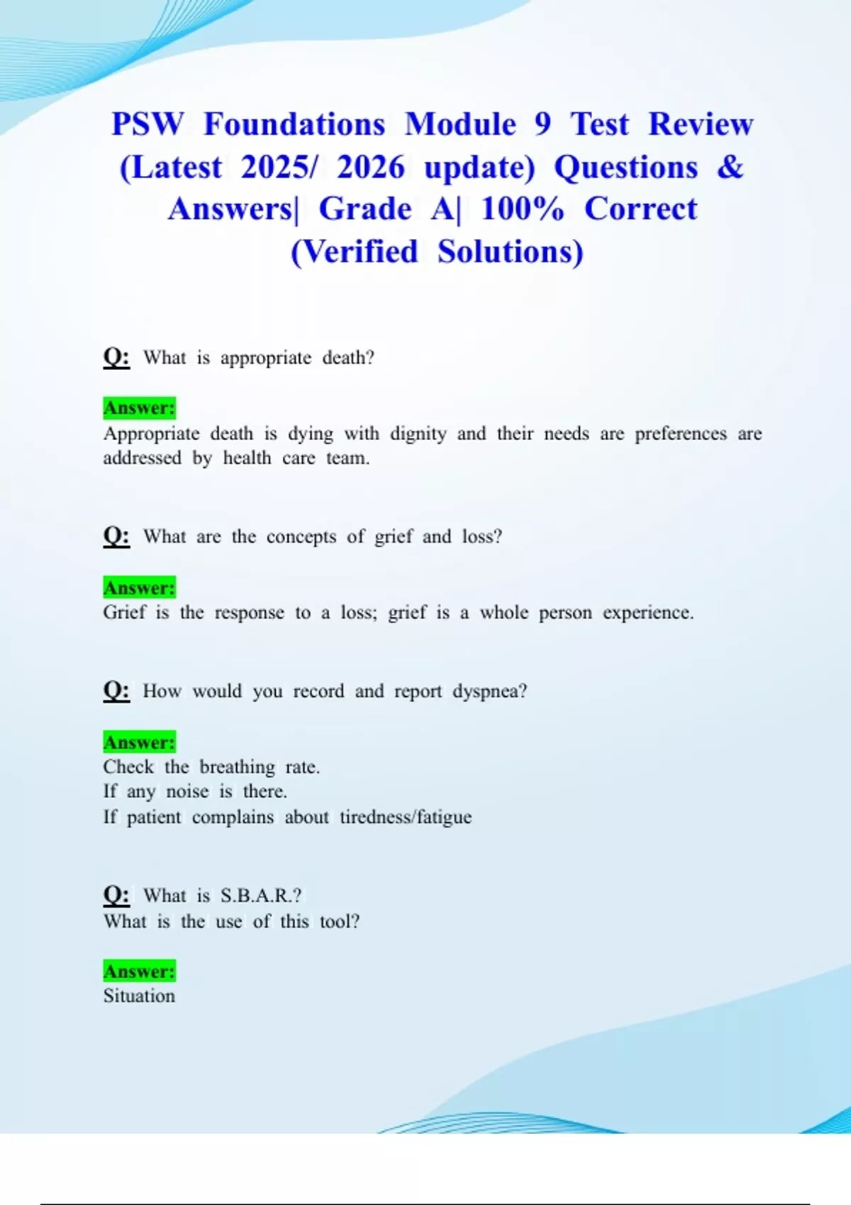 PSW Foundations Module 9 Test Review (Latest 2025/ 2026 Update) Questions & Answers| Grade A| 100% Correct (Verified Solutions)