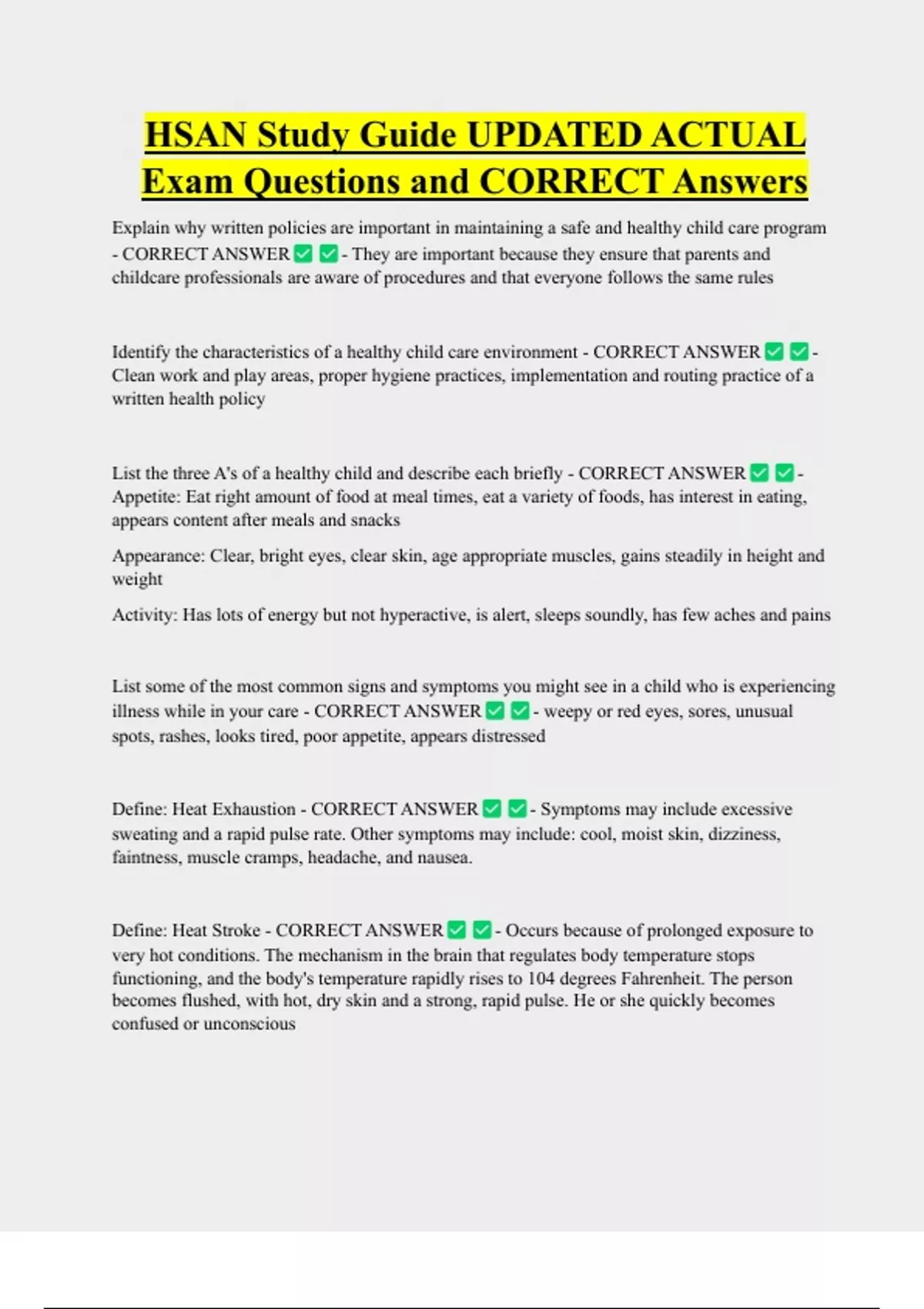 HSAN Bundled Exam Questions WITH CORRECT Answers