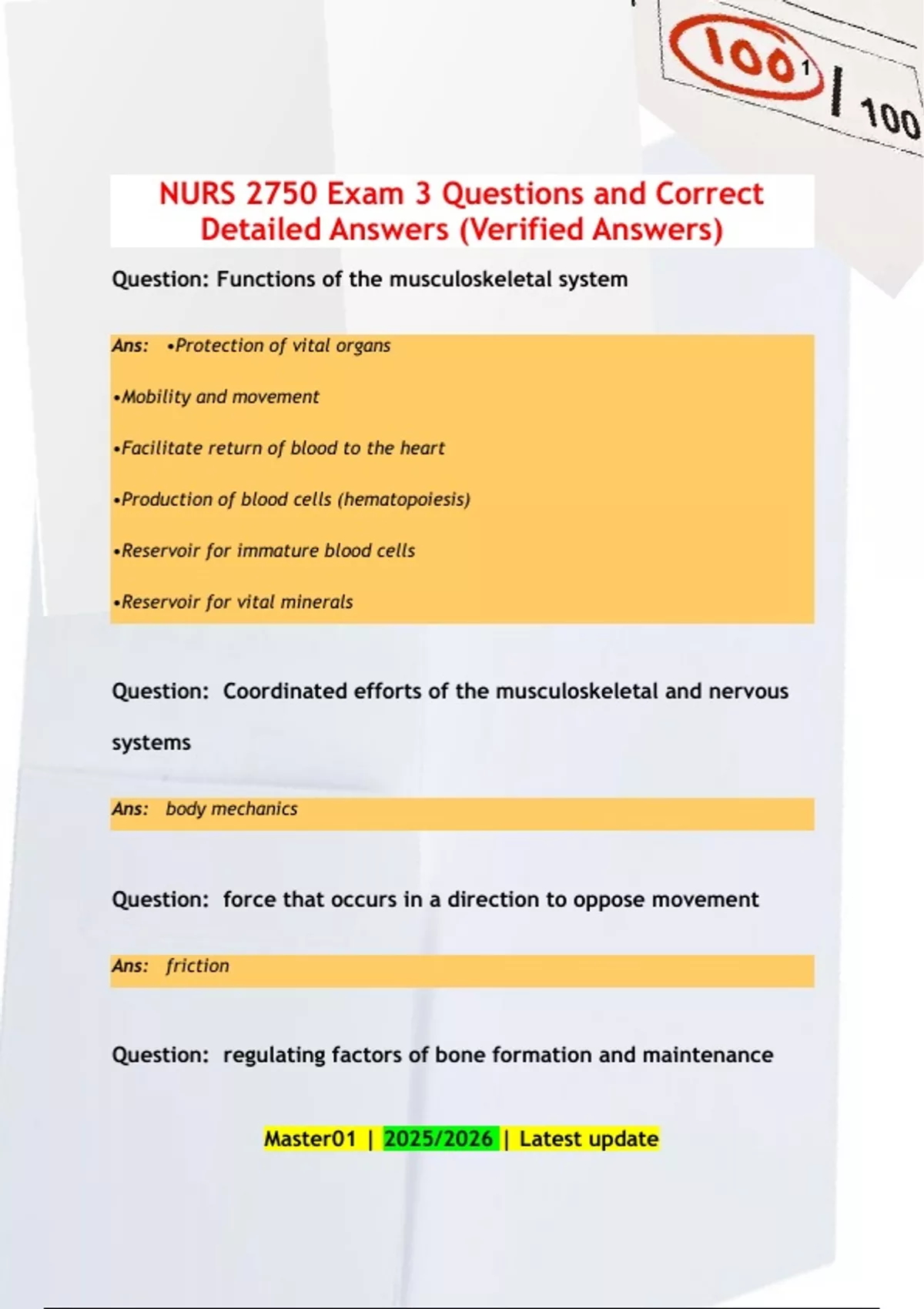 NURS 2750 Exam 1,2, 3 Questions and Correct Detailed Answers (Verified Answers)