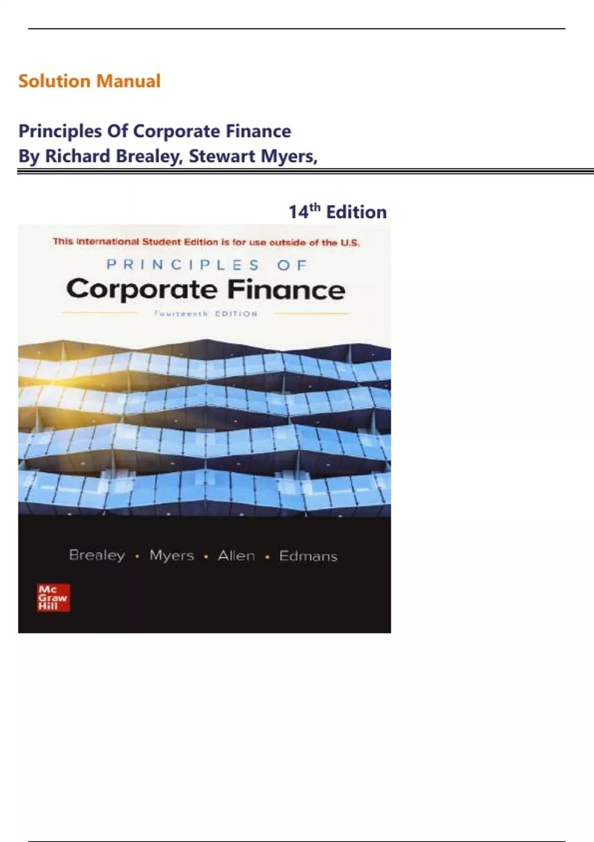Test Bank & Solution Manual for Principles of Corporate Finance 14th Edition by Richard Brealey, Stewart Myers, Franklin Allen and Alex Edmans|| All Chapters 1-33 Included|| LATEST