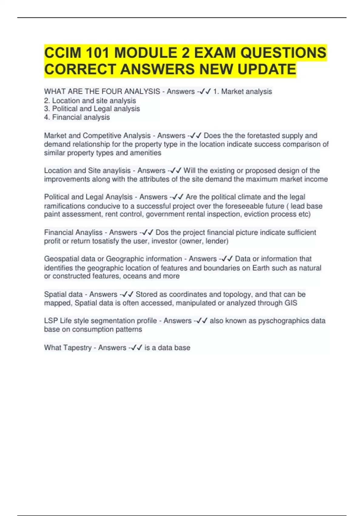 Bundle For CCIM 101 MODULE 1,2,3,4,5,6,7&8 EXAM QUESTIONS CORRECT ANSWERS NEW UPDATE