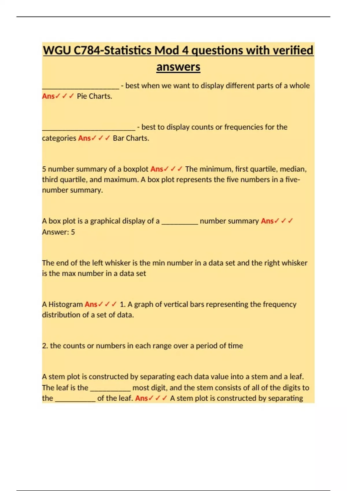 WGU C784 - Applied Healthcare Statistics Tests Bundle Set