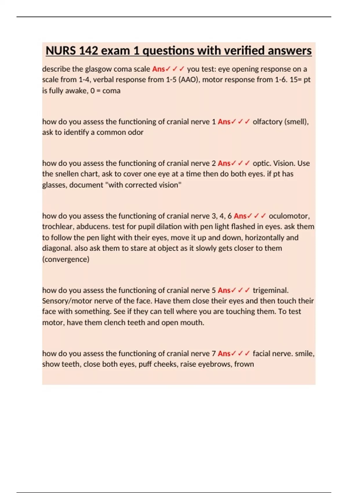 Nursing 142 ; Introduction to Health Assessment questions with verified answers