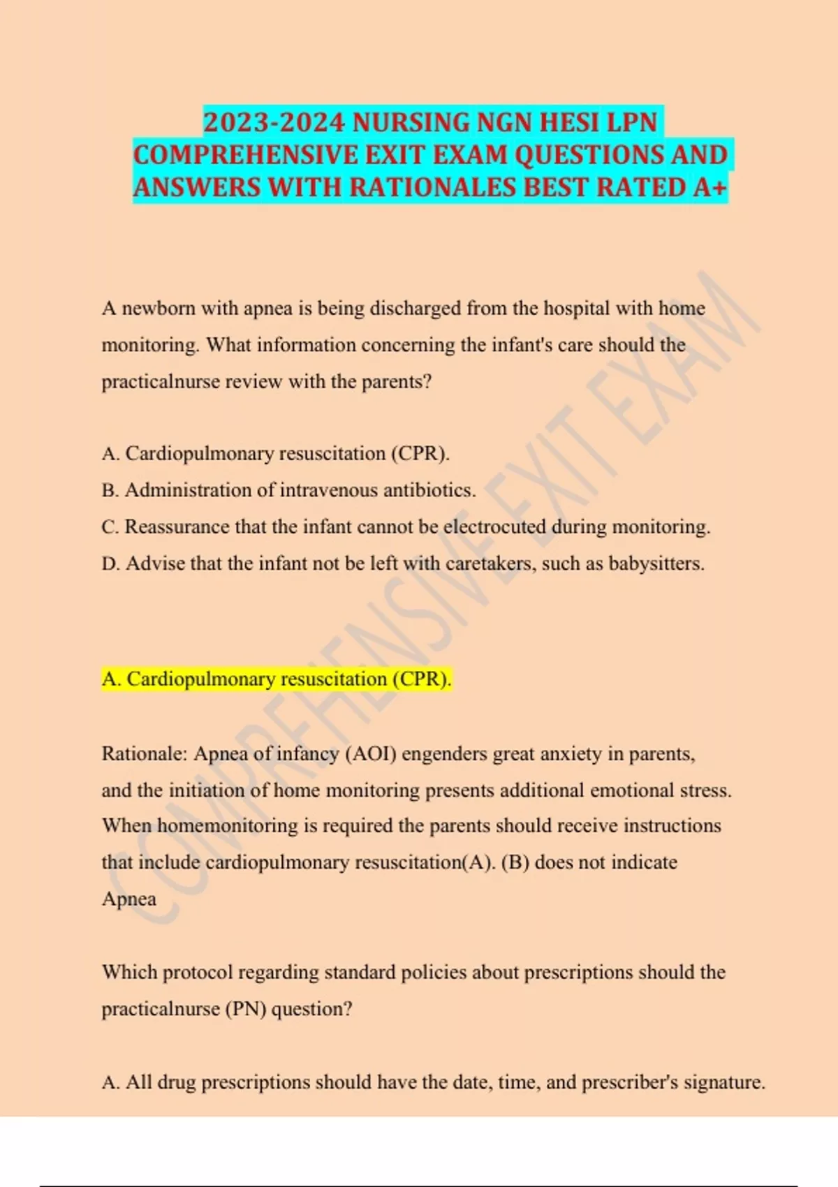 NEW GENERATION 2025 HESI EXIT NURSING COMPREHENSIVE EXAM LATEST UPDATE WITH CORRECT SOLUTION GRADED A+