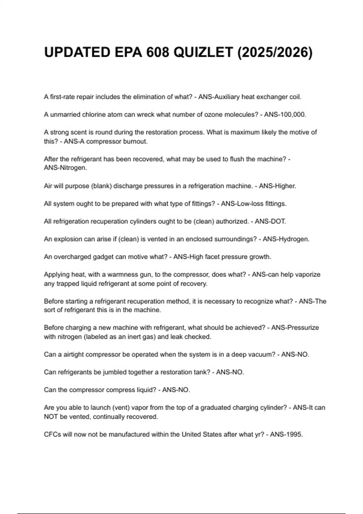 EPA 608 Universal QUESTIONS AND CORRECT DETAILED ANSWERS 2025/2026 (VERIFIED ANSWERS) |ALREADY GRADED A+||BRAND NEW!! (ALL BUNDLED HERE!!!)