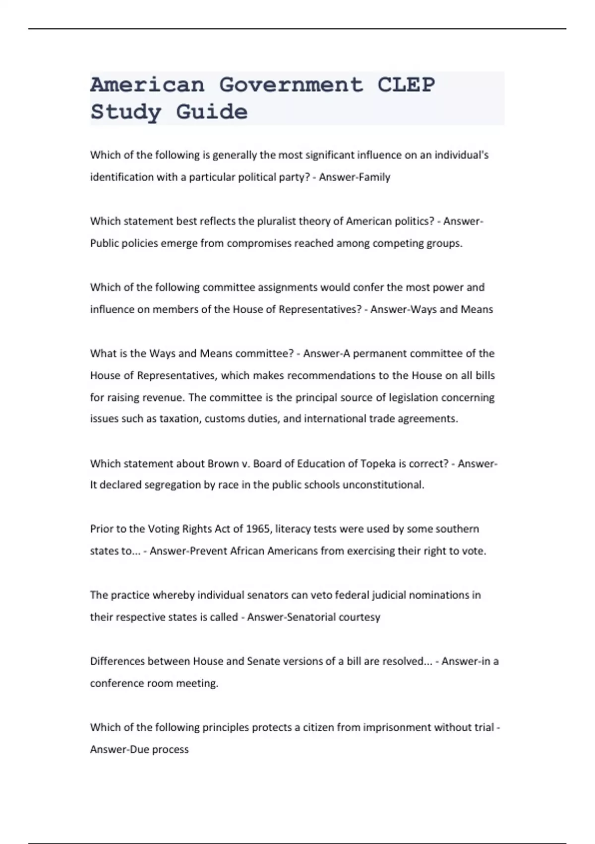 American Government Modern States CLEP/American Government CLEP : Major Supreme Court Cases/American Government CLEP /American Exam Government CLEP