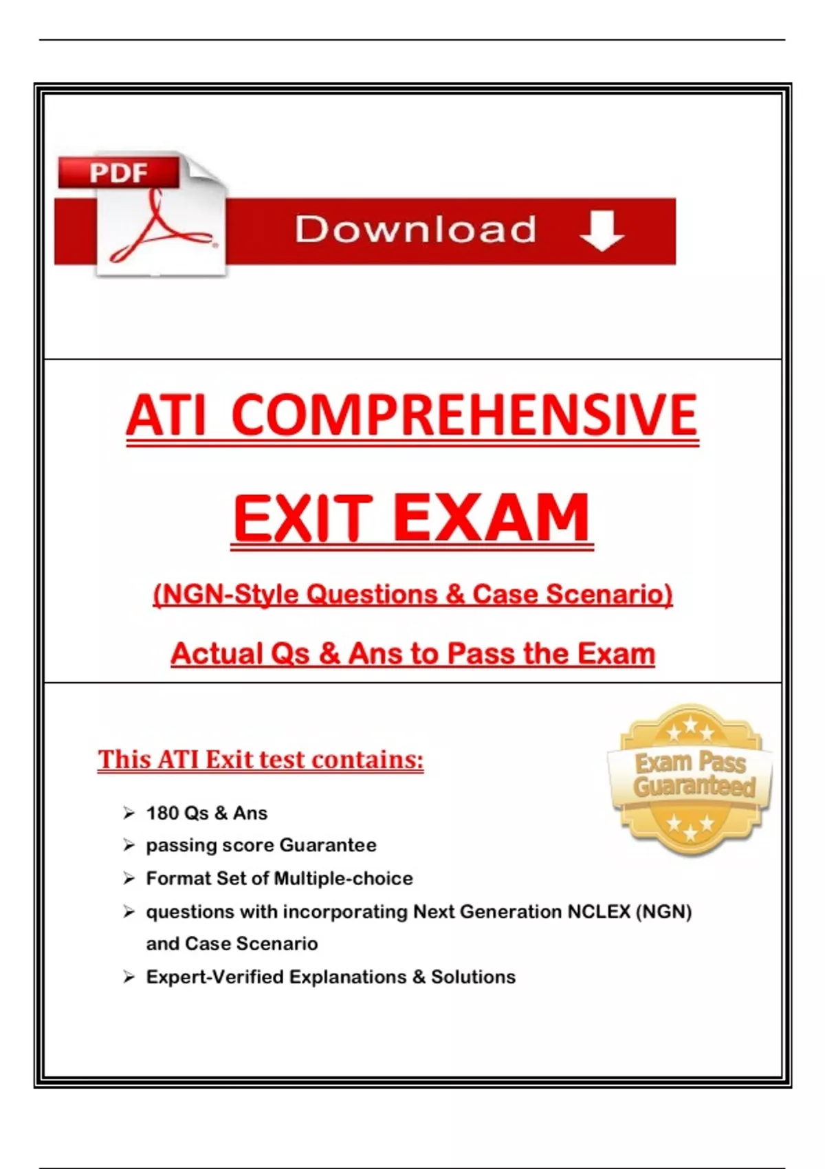 Comprehensive ATI Exit Exam - (latest 2025) - Qs & Ans to Pass the Exam - (NGN style Qs & Case Scenario's), Pass with Confidence