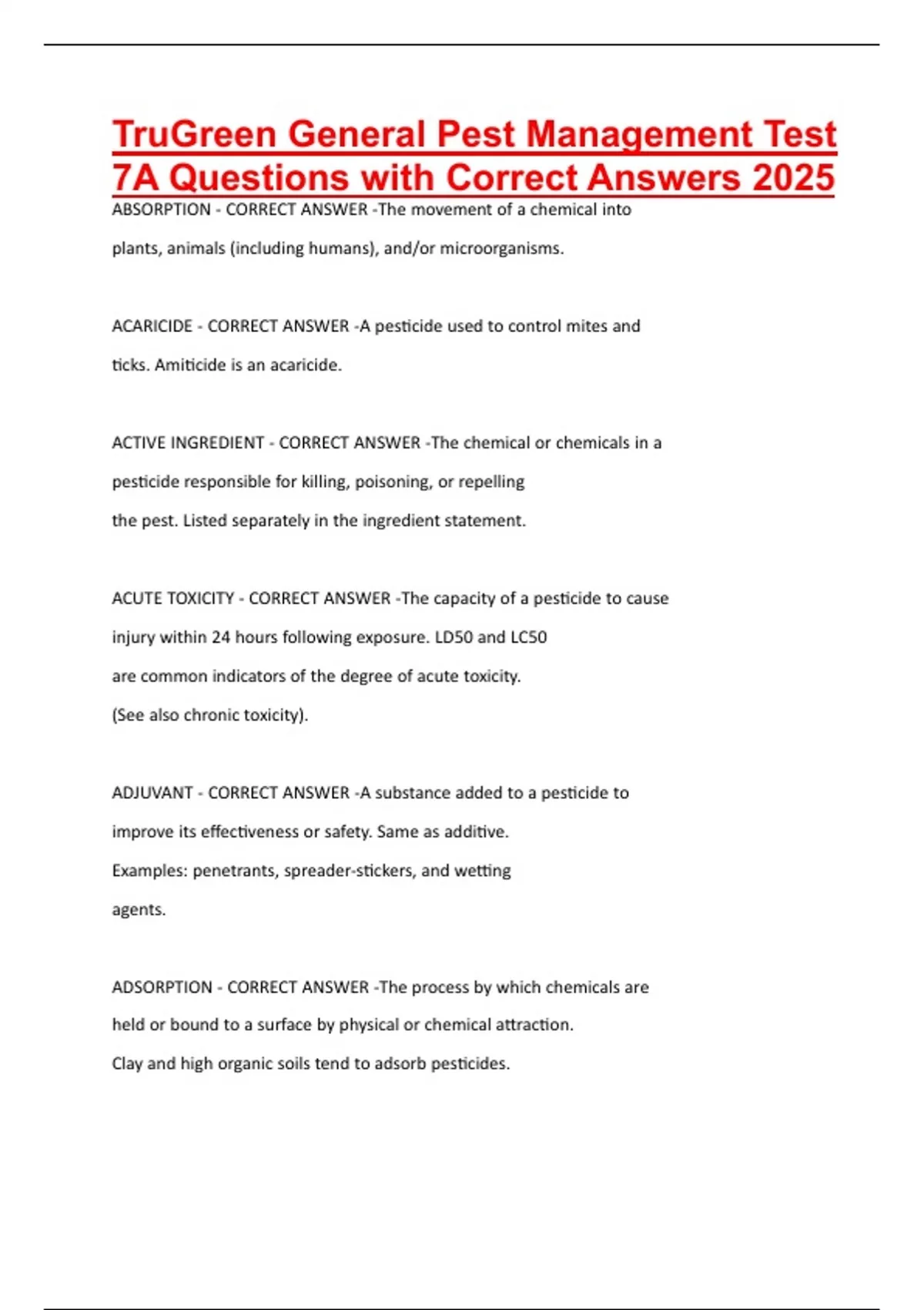 TruGreen General Pest Management Test 7A Questions with Correct Answers 2025