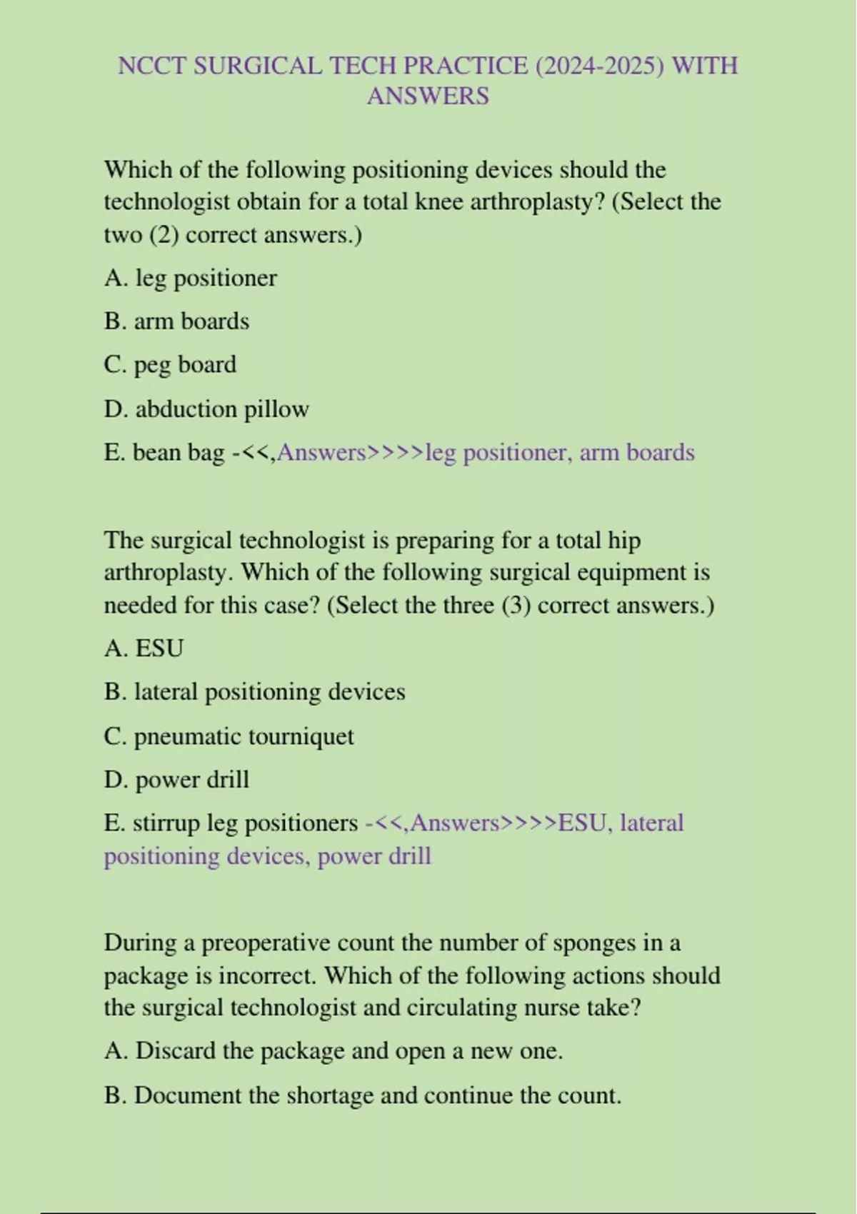 NCCT SURGICAL TECH EXAM,NCCT SURGICAL TECH PRACTICE NCCT SURGICAL TECH PRACTICE EXAM,NCCT-TSC SURGICAL TECHNOLOGIST EXAM (ACTUAL 2025/2026) WITH QUESTIONS AND VERIFIED SOLUTIONS