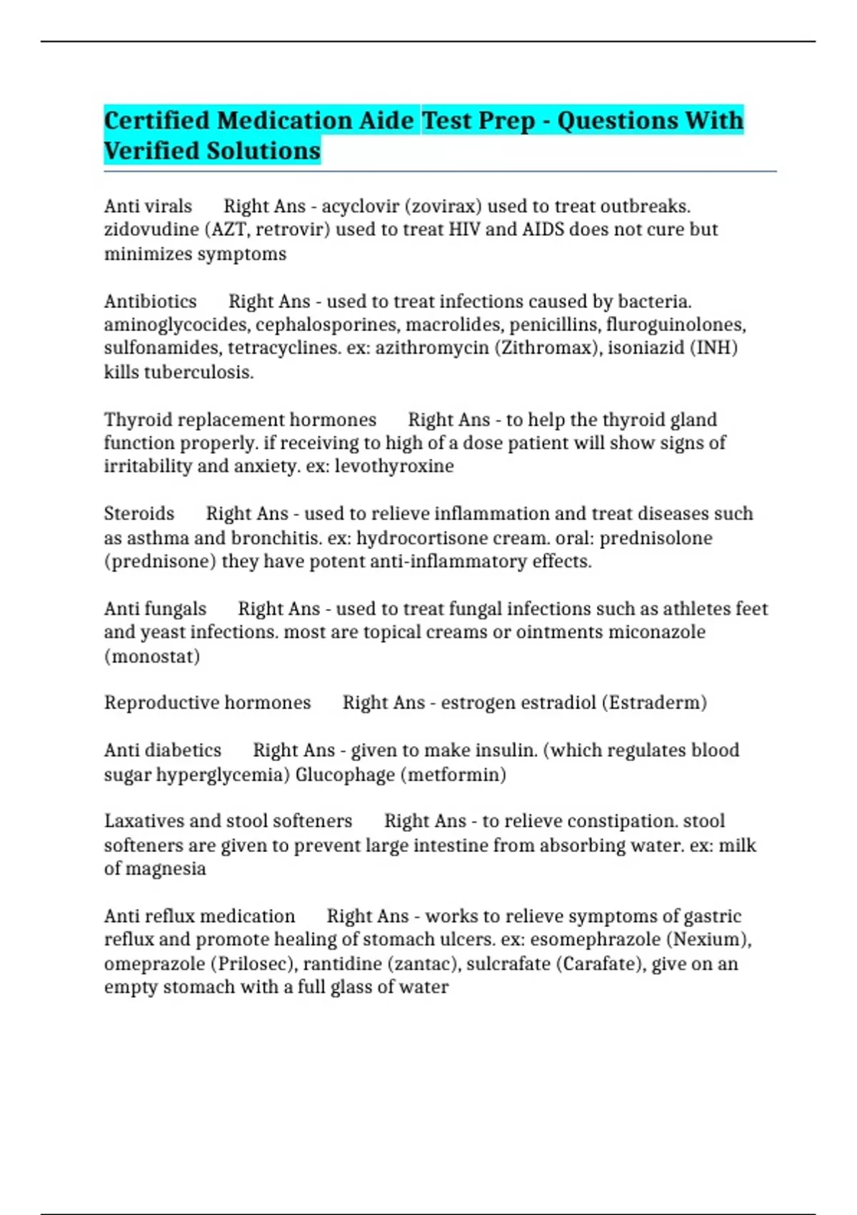 PACKAGE::- CERTIFIED MEDICATION AIDE (CMA EXAMS)