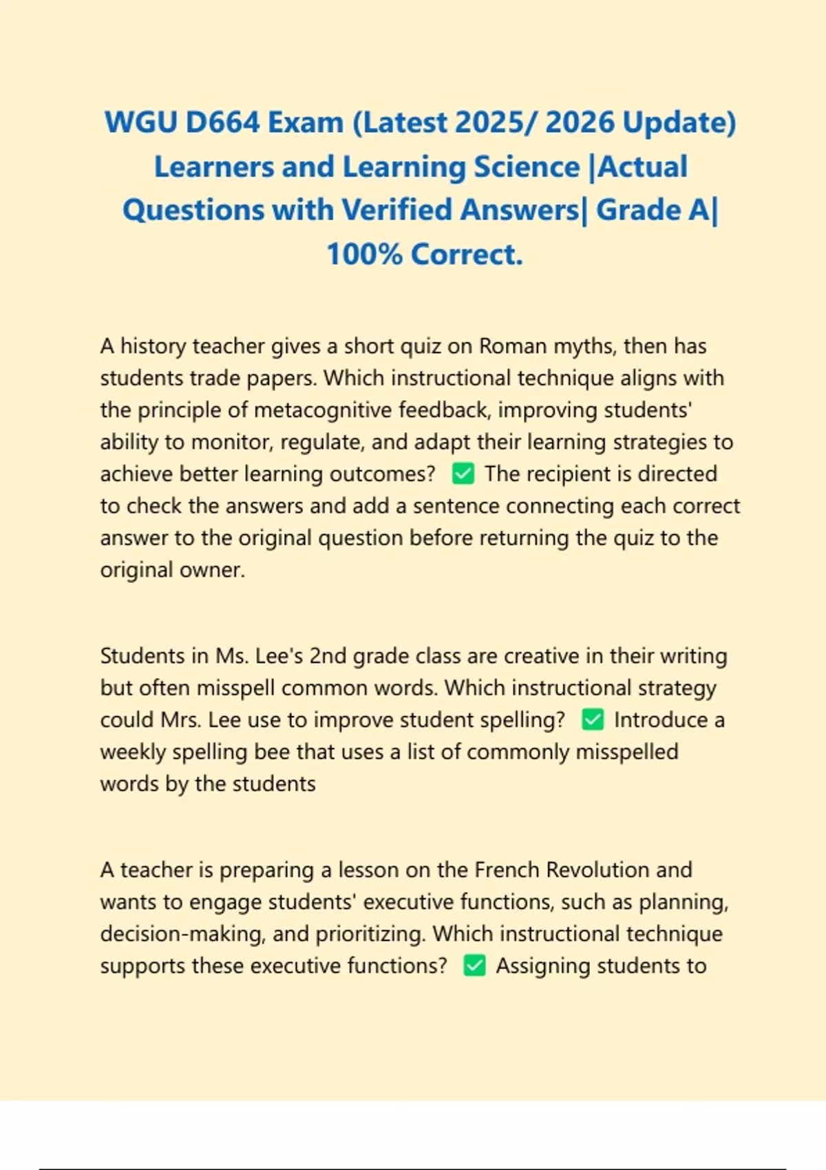 WGU D664/ WGUD664 Learner and Learning Science Exams PACKAGE DEAL| BUNDLE contains the Latest Objective Assessment , Pre-Assessment and exam questions with Verified Answers - Everything you need to pass WGU D664 is here!!