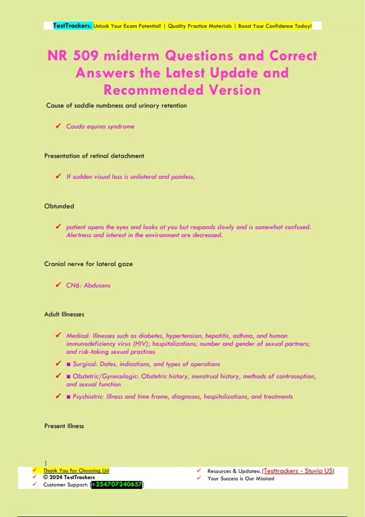 NRS 509 FINAL Questions and Correct Answers the Latest Update and Recommended Version