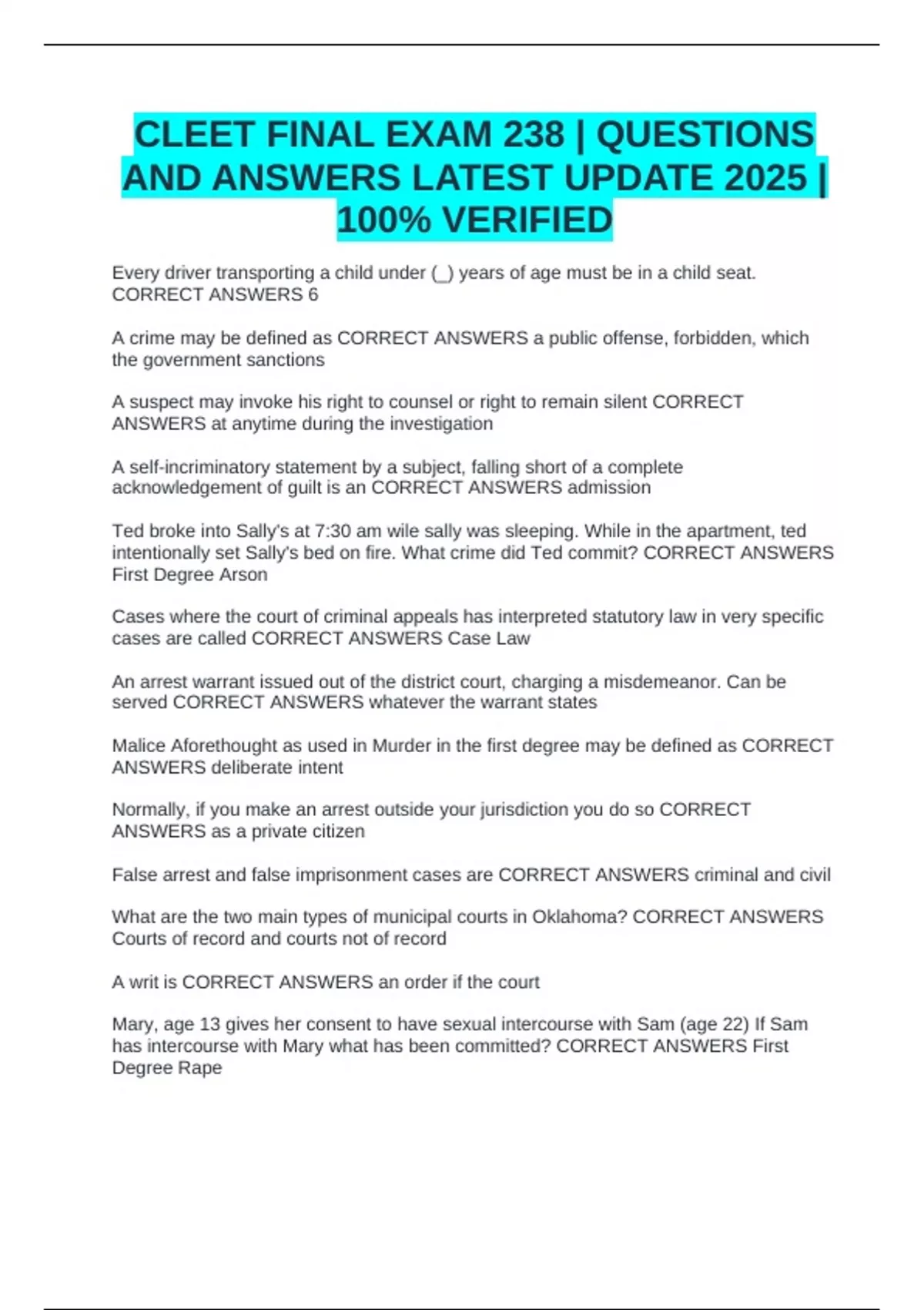 CLEET FINAL EXAM 238 | QUESTIONS AND ANSWERS LATEST UPDATE 2025 | 100% VERIFIED