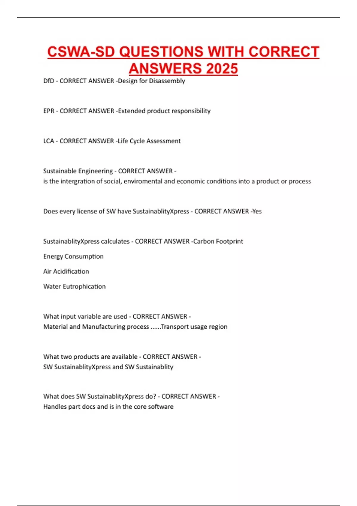 Certified Sustainable Design Associate -CSWA-SD- Questions with Correct Answers 2025