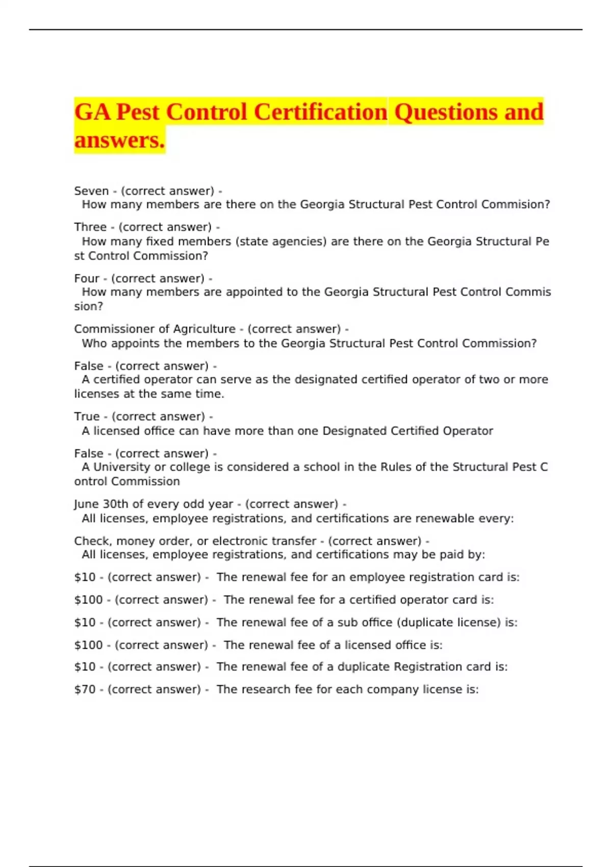 Georgia Pest Control Test Questions and Answers 100% Correct