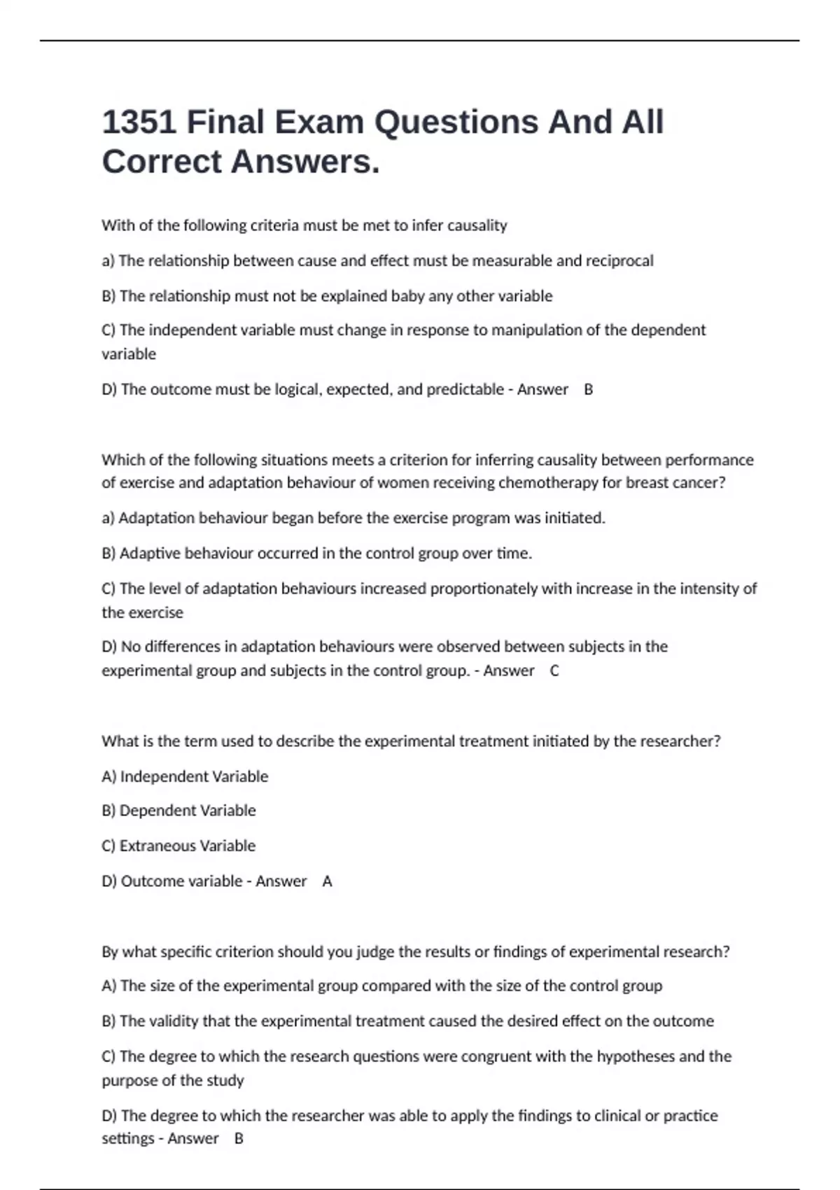 1 Exam (elaborations) Nursing Skills Exam- Enteral Tube Feeds (TPN) Questions Fully Solved . 2 Exam (elaborations) NURS 135 Midterm/Final Exam Questions And Answers Rated A+. 3 Exam (elaborations) NUR 102 OB Final Exam 1 Questions With Already Passed Answers. 4 Exam (elaborations) NRSG-2702 FINAL EXAM Questions And Actual Answers.
