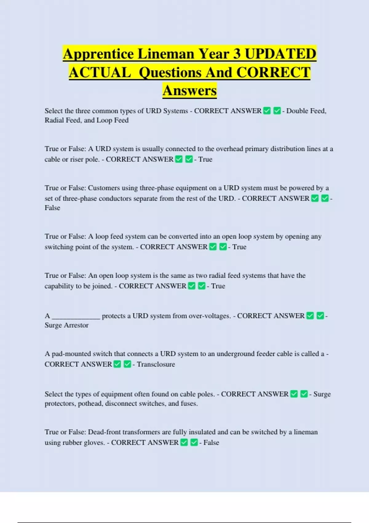 Lineman Apprentice Bundled Exam Questions WITH CORRECT Answers