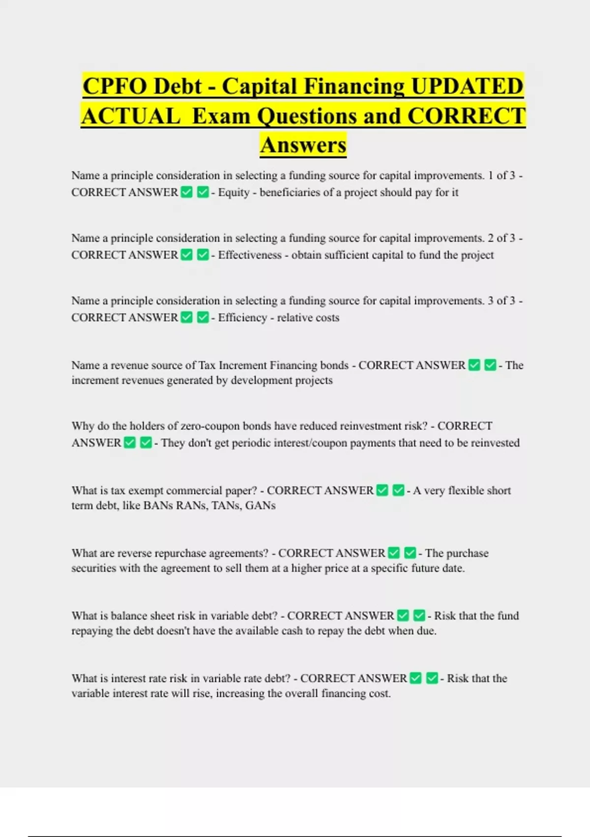 CPFO Bundled Exam Questions WITH CORRECT Answers