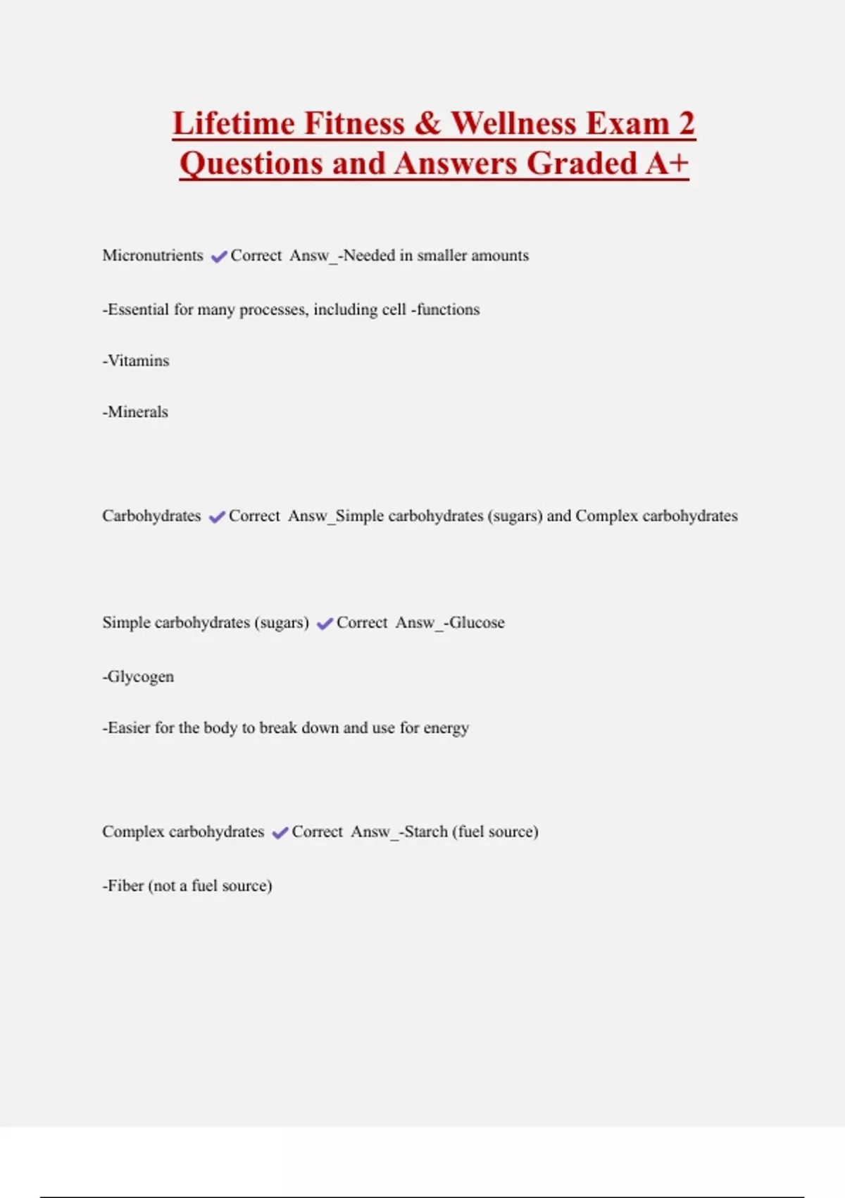 Lifetime Fitness & Wellness Exam 2 Questions and Answers Graded A+ 2 Exam (elaborations) Lifetime Fitness - Topic Test 2 Questions and Answers 100% Solved 3 Exam (elaborations) Lifetime Fitness - Practice Test Questions and Answers 1000% Solved 4 Exam (elaborations) Introduction to Lifetime Fitness Study Guide Questions and Answers 100% Solved