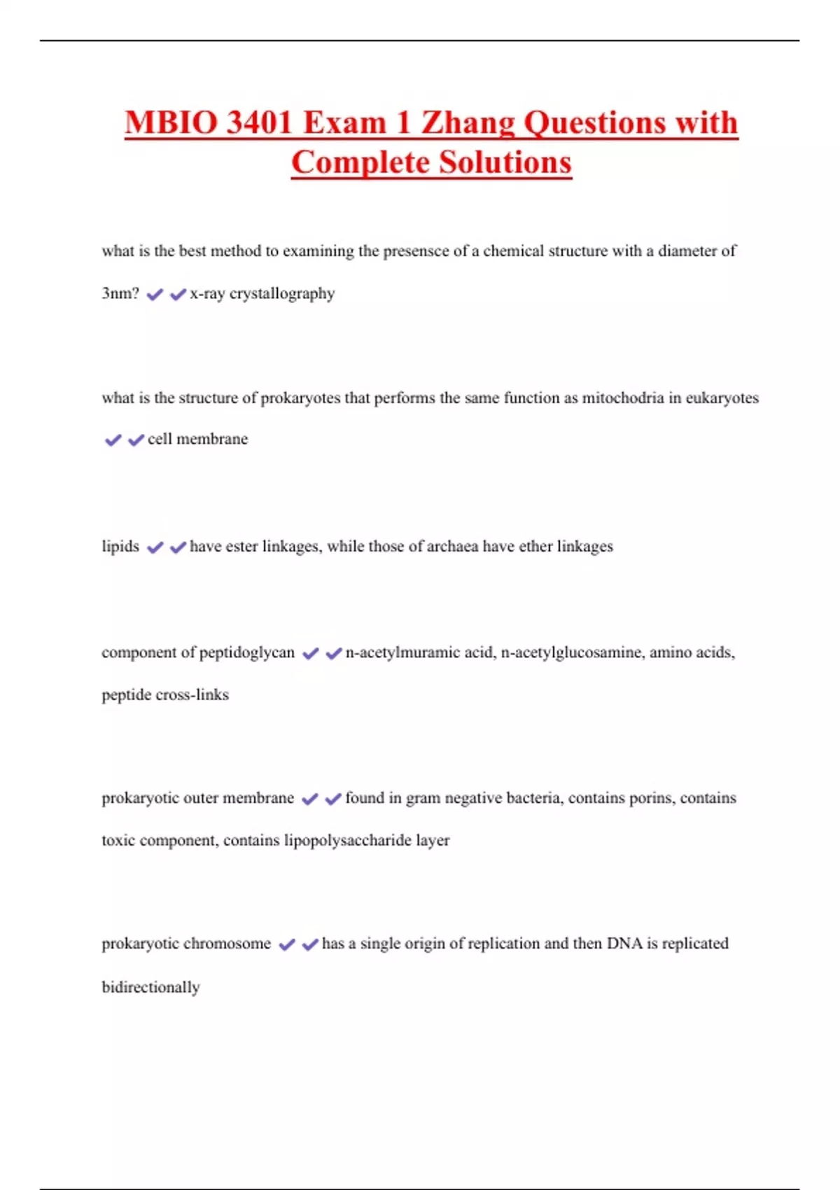MBIO 3401 Exam 1 Zhang Questions with Complete Solutions 2 Exam (elaborations) MBIO 3401 Final Exam Questions and Answers 100% Correct 3 Exam (elaborations) MBIO 3401 Exam 3 Questions and Answers 100% Correct 4 Exam (elaborations) MBIO 3401 Exam 3 Questions and Answers Verified by Experts 5 Exam (elaborations) MBIO 3401 Exam 1 Questions with Co