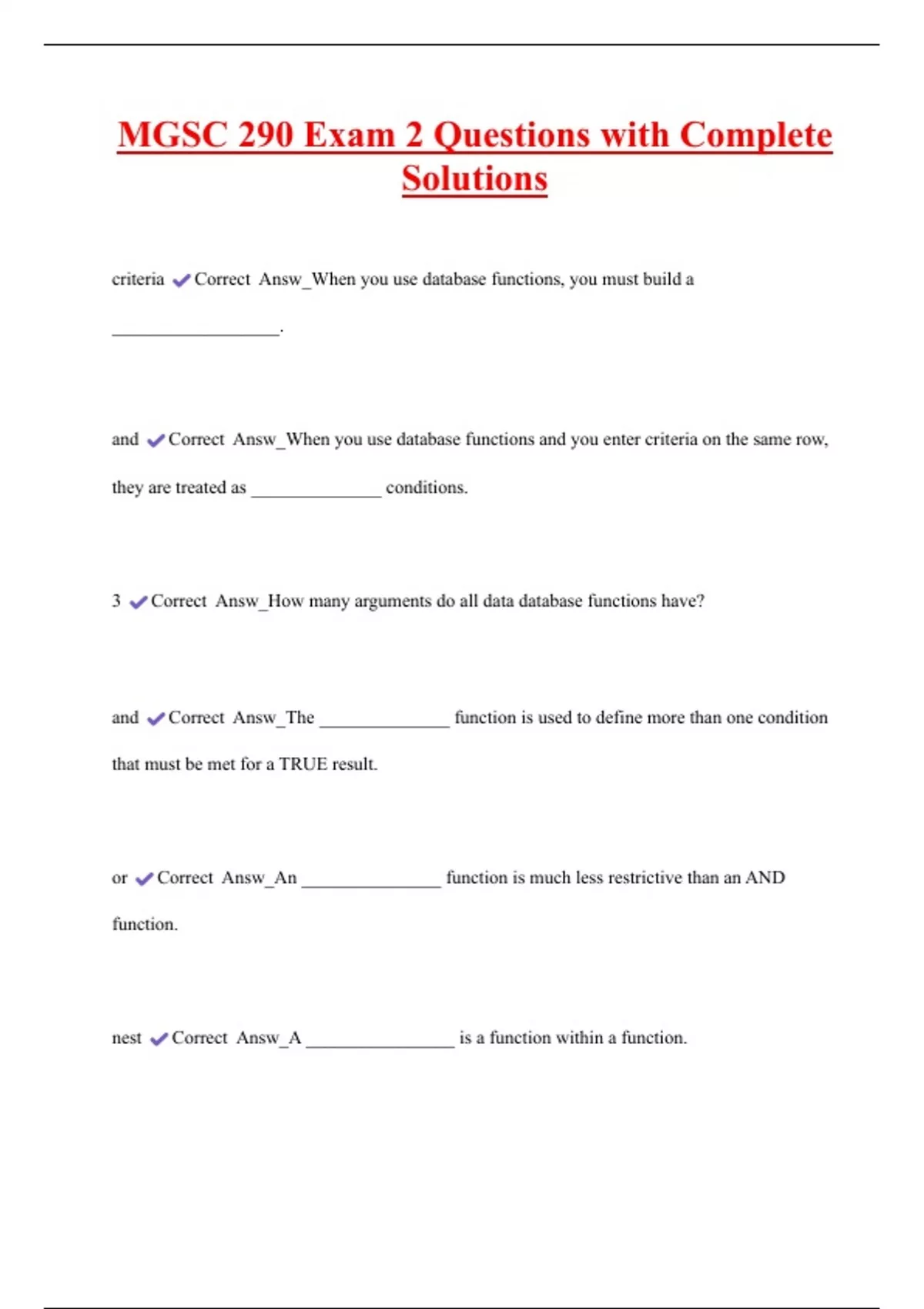 MGSC 290 Exam 3 Questions and Answers|Latest Update 2 Exam (elaborations) mgsc 290 exam 1 Questions and Answers 100% Correct 3 Exam (elaborations) MGSC 290 Exam 2 Questions with Complete Solutions