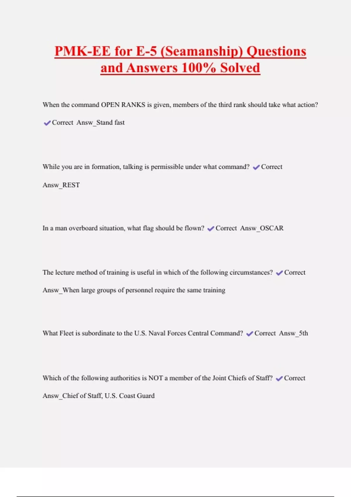 PMK PMK-EE (E-5) Questions and Answers 100% Solved 2 Exam (elaborations) PMK-EE for E-5 (Seamanship) Questions and Answers 100% Solved