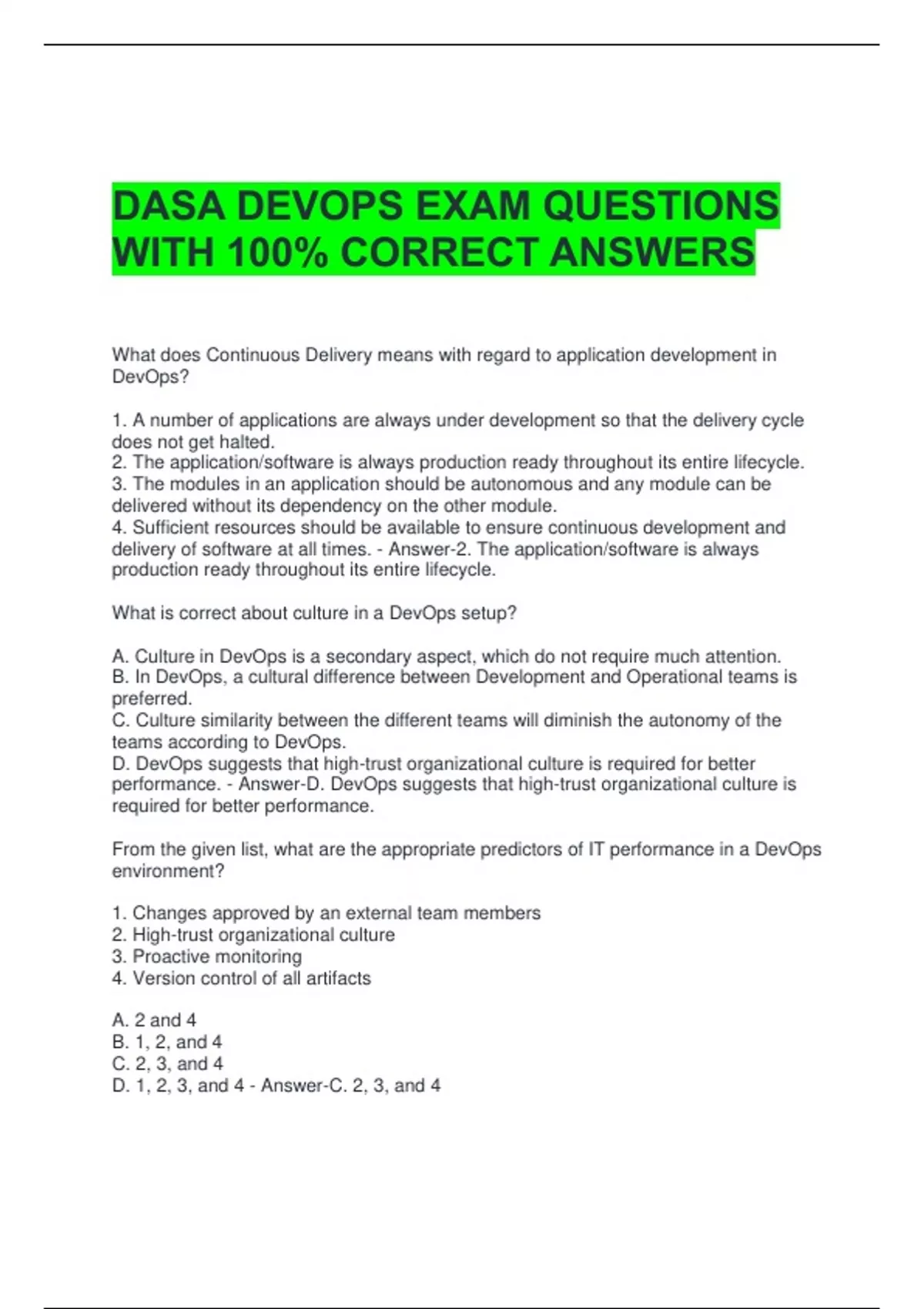 DASA EXAM QUESTIONS AND ANSWERS ALL CORRECT 2 Exam (elaborations) DASA STUDY QUESTIONS WITH ANSWERS ALL CORRECT 3 Exam (elaborations) DASA Midterm Exam Questions and Answers All Correct 4 Exam (elaborations) DASA FINAL EXAM QUESTIONS WITH 100% SOLVED ANSWERS 5 Exam (elaborations) DASA Final Study Guide Questions and Answers All Correct 6 Exam