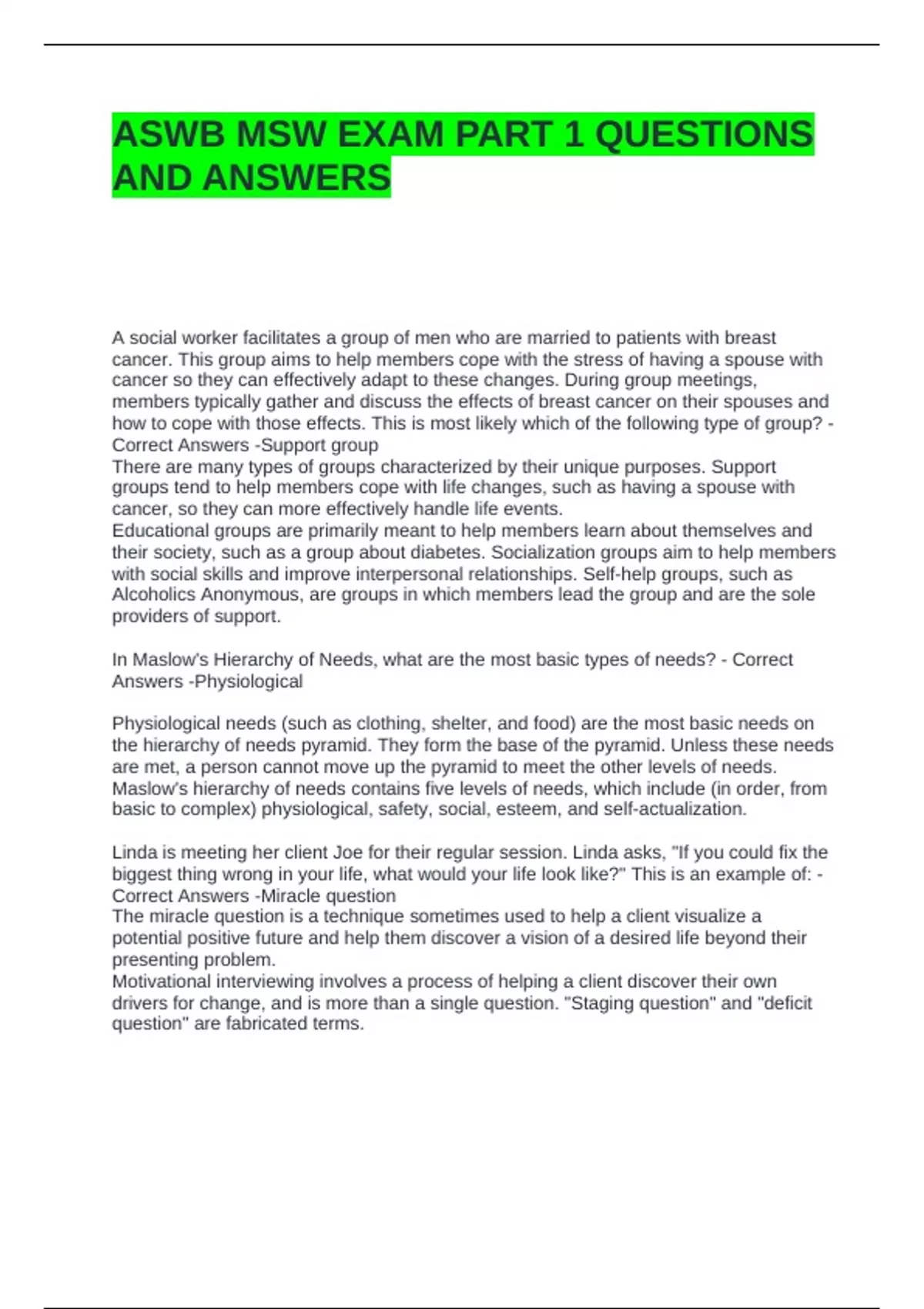 1 Exam (elaborations) UNIT 1 HUMAN DEVELOPMENT (CLINICAL MSW EXAM) QUESTIONS AND ANSWERS 2 Exam (elaborations) UKY MSW FINAL EXAM QUESTIONS AND ANSWERS 3 Exam (elaborations) SOCIAL WORK LICENSE (MSW EXAM) QUESTIONS AND ANSWERS 4 Exam (elaborations) MSW PRACTICE EXAM QUESTIONS WITH CORRECT ANSWERS 5 Exam (elaborations) MSW PRACTICE EXAM 1 QUESTI