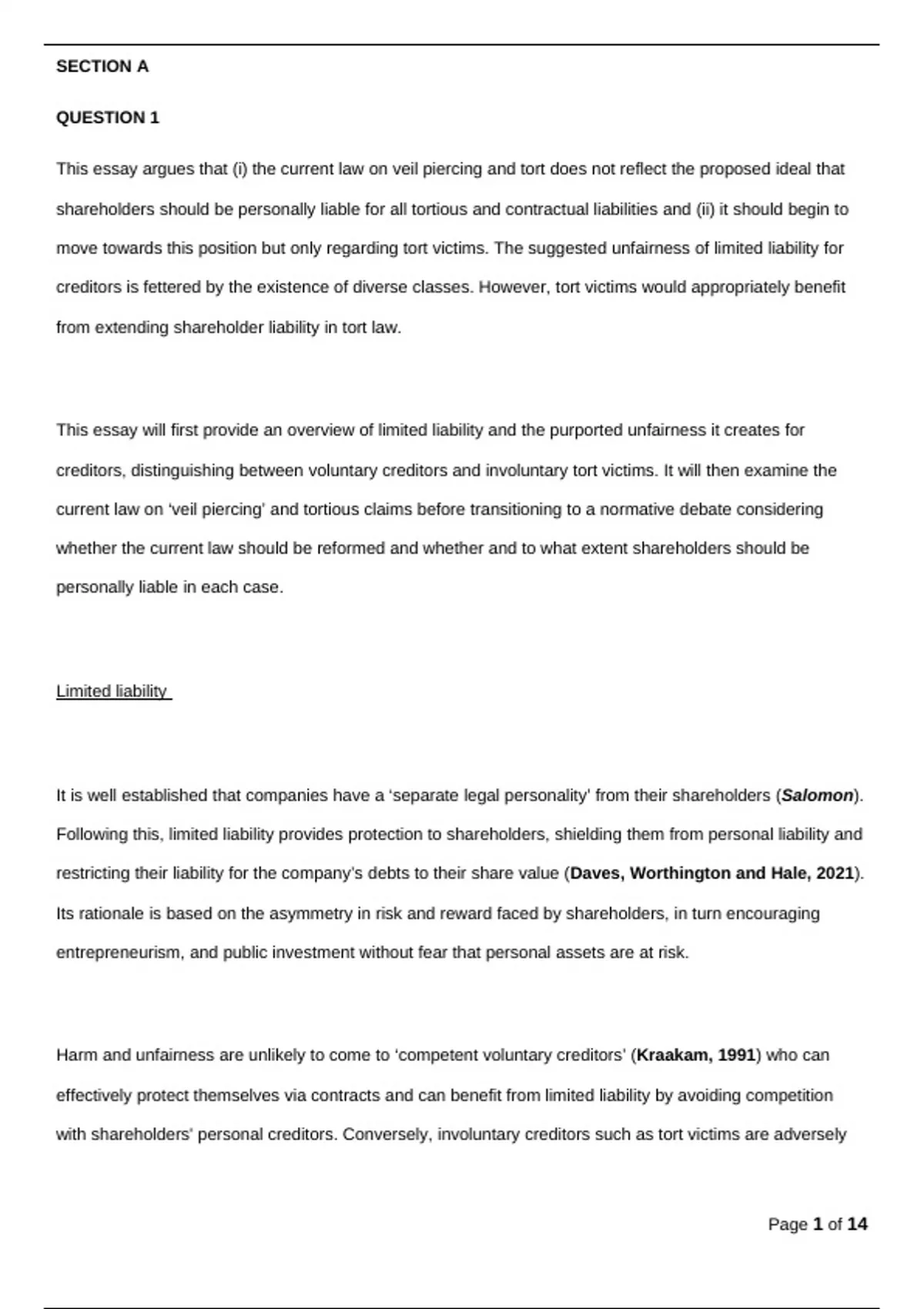 Collection of first class company law notes, exemplar company law and corporate finance essays and problem questions.