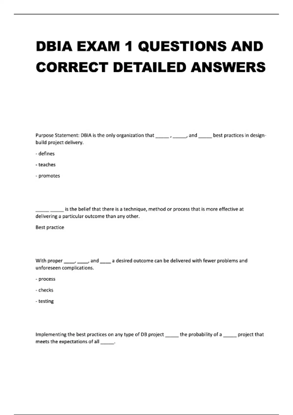 DBIA CERTIFICATION STUDY GUIDE PRACTICE QUESTIONS WITH CORRECT ANSWERS