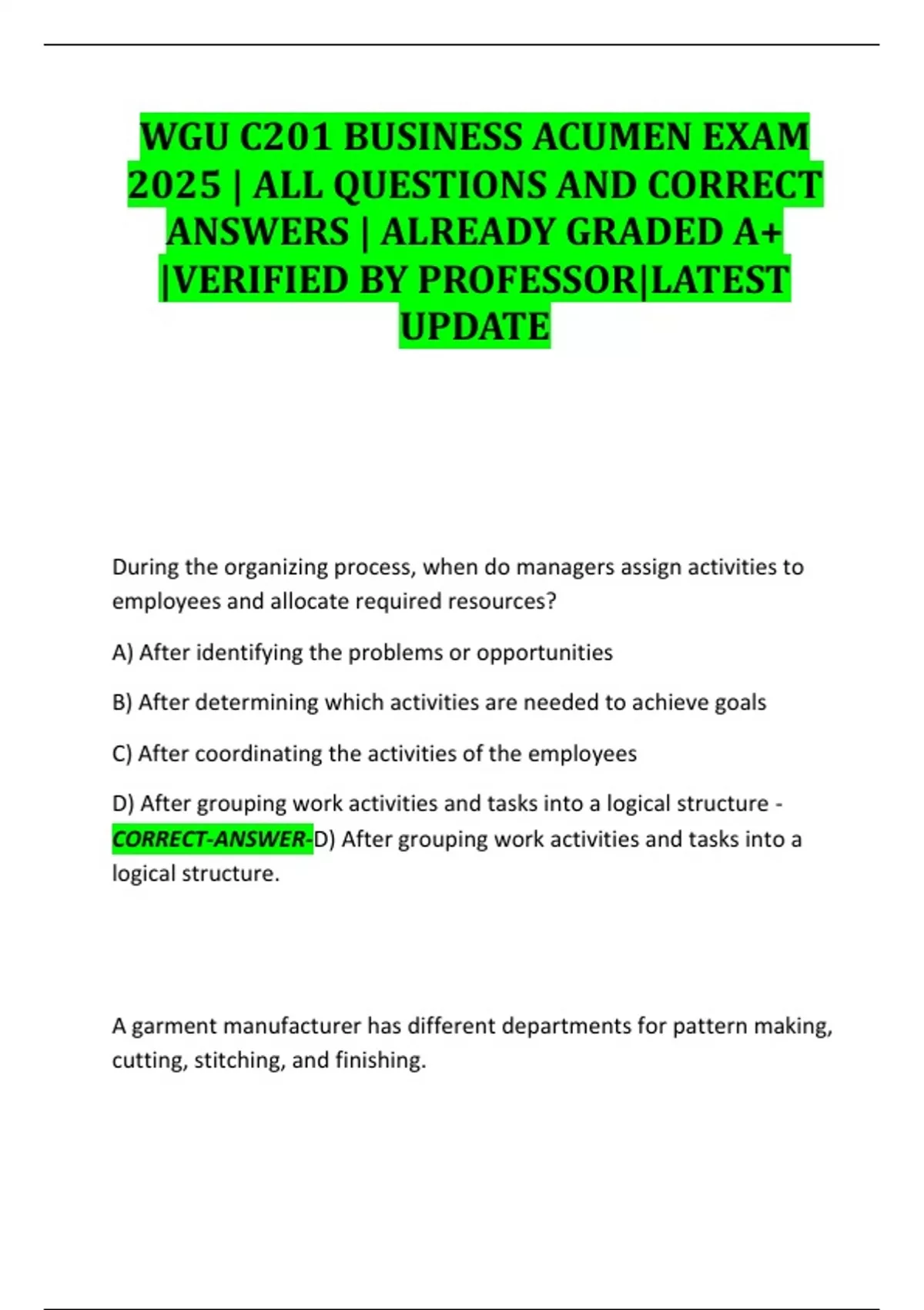 This package contains 2 exam(elaborations)WGU C201 BUSINESS ACUMEN EXAMS 2025 | ALL QUESTIONS AND CORRECT ANSWERS | ALREADY GRADED A |VERIFIED BY PROFESSOR|LATEST UPDATE