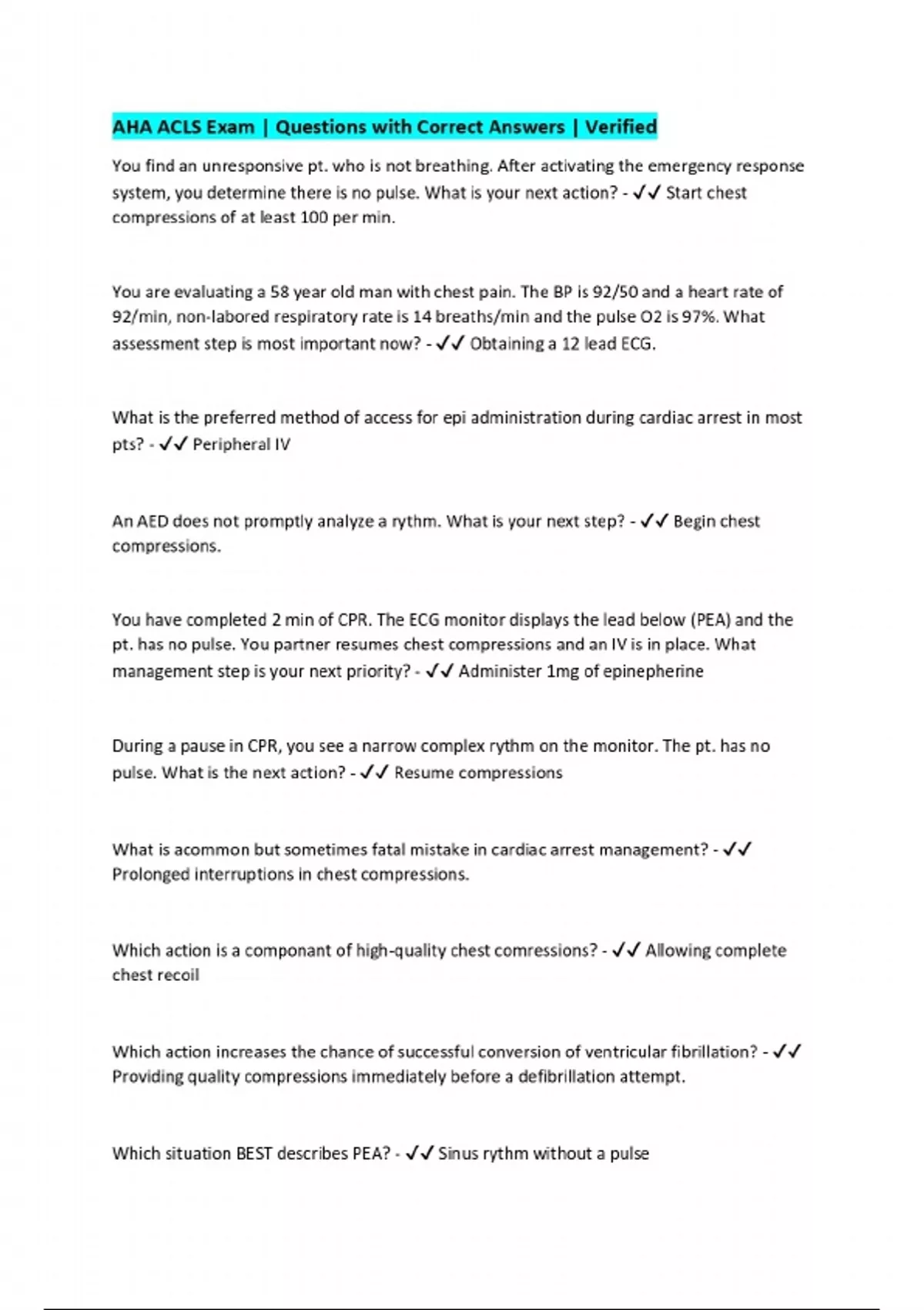 EXAMS BUNDLE::::AHA ACLS (2025/2026) | Questions with Correct Answers | Verified