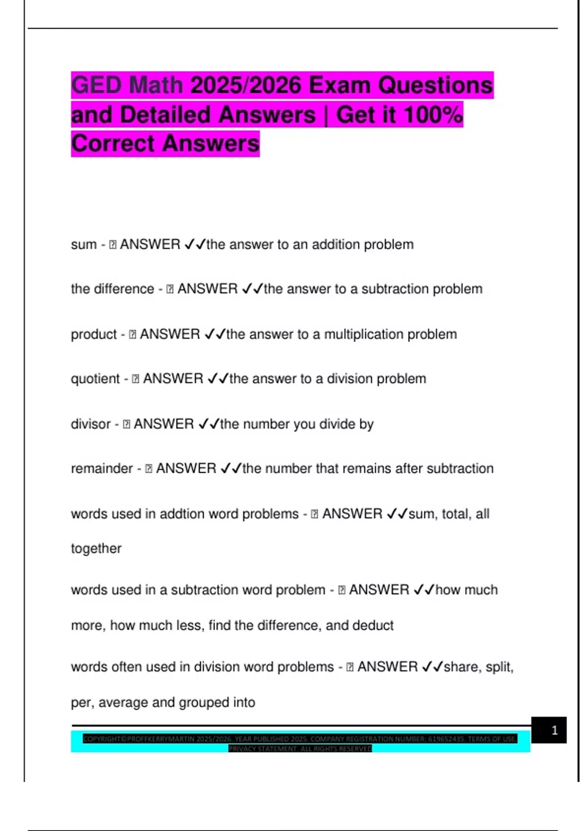 GED MATH EXAM PACKAGE DEAL QUESTIONS AND VERIFIED DETAILED ANSWERS | 100% GUARANTEED PASS | ALREADY GRADED A+