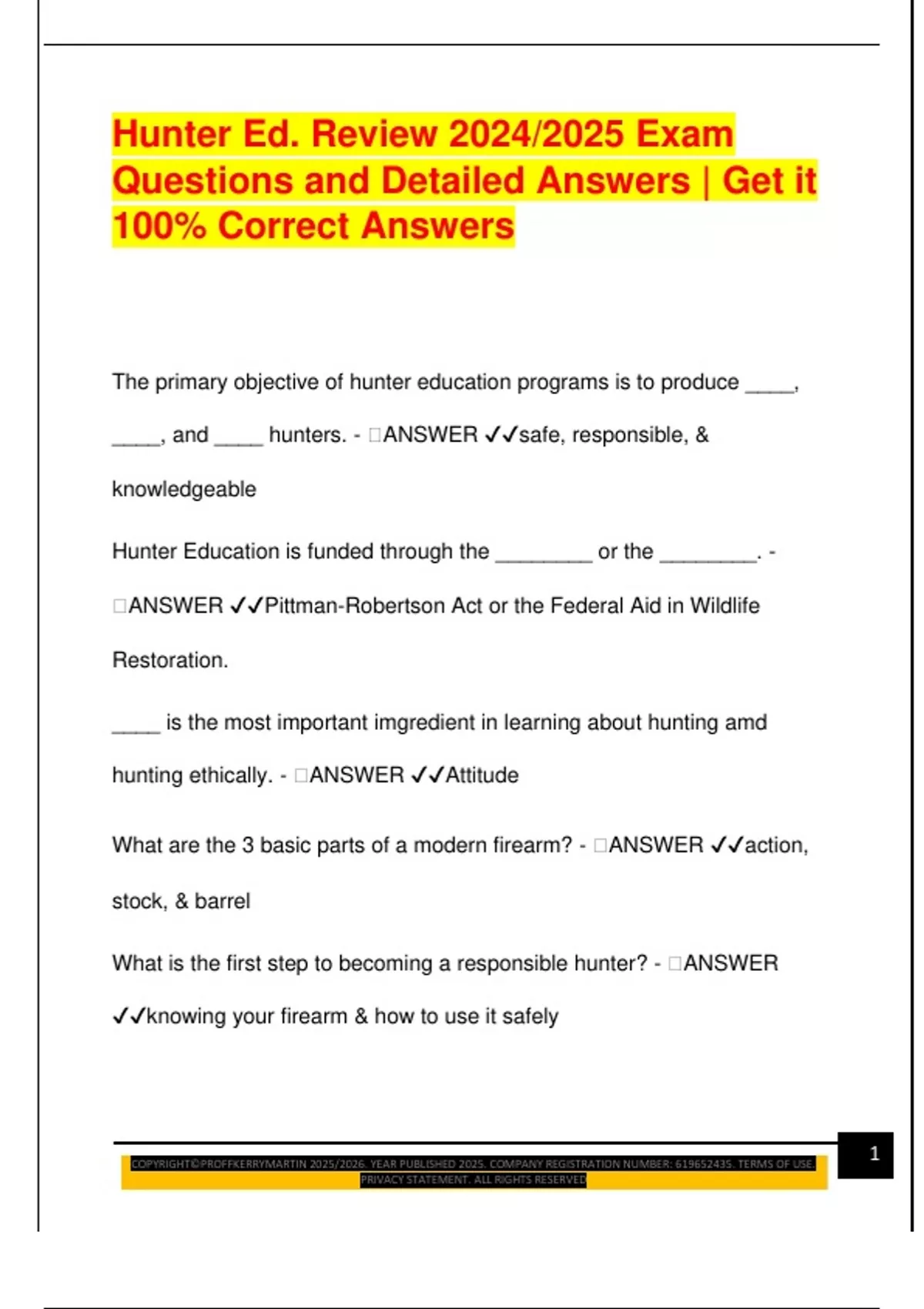HUNTERS EXAM PACKAGE DEAL QUESTIONS AND VERIFIED DETAILED ANSWERS | 100% GUARANTEED PASS | ALREADY GRADED A+