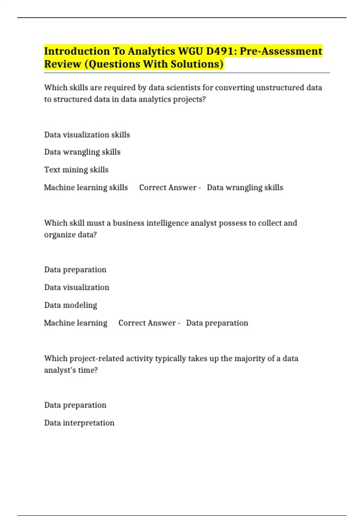 BUNDLE::- WGU D491 EXAMS - INTRODUCTION TO ANALYTICS