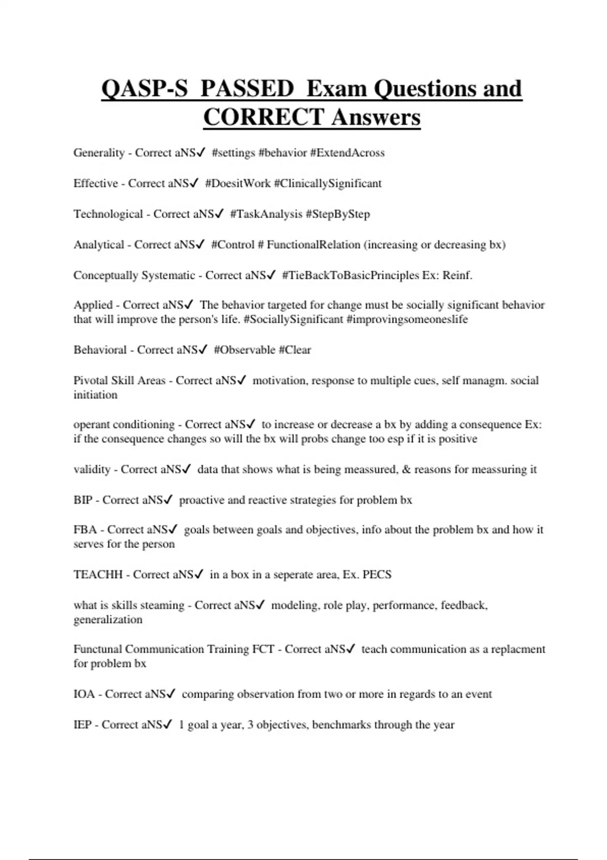 QASP Bundled Exam Questions WITH CORRECT Answers