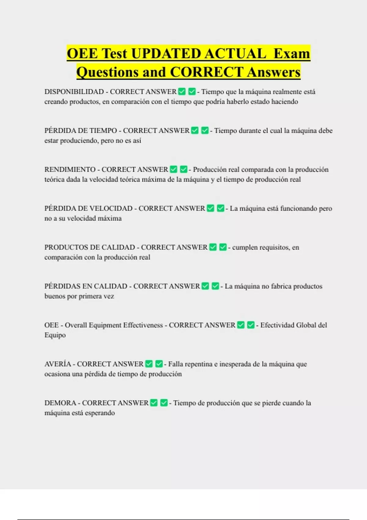 OEE Bundled Exam Questions WITH CORRECT Answers