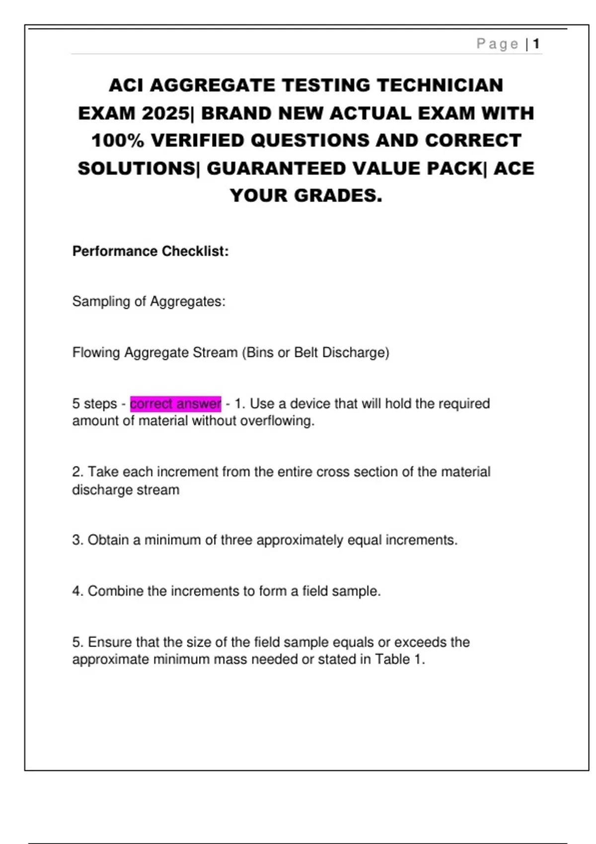 ACI CONCRETE FIELD TESTING TECHNICIAN- GRADE I EXAM 2025| BRAND NEW ACTUAL EXAM WITH 100% VERIFIED QUESTIONS AND CORRECT SOLUTIONS| GUARANTEED VALUE PACK| ACE YOUR GRADES.