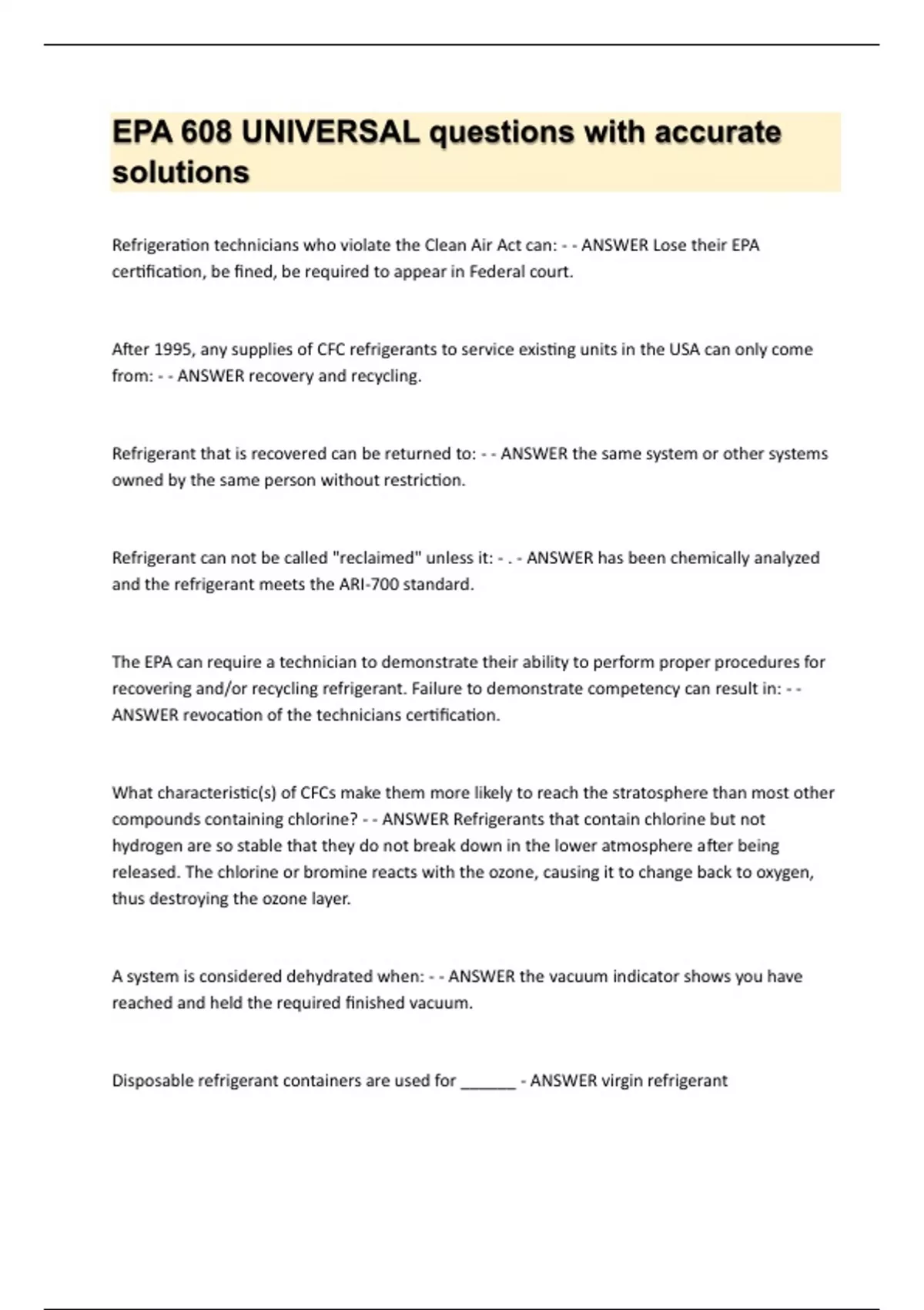 EPA 608 EXAM PACKAGE DEAL QUESTIONS AND ANSWERS WITH VERIFIED SOLUTIONS UPDATED 2025