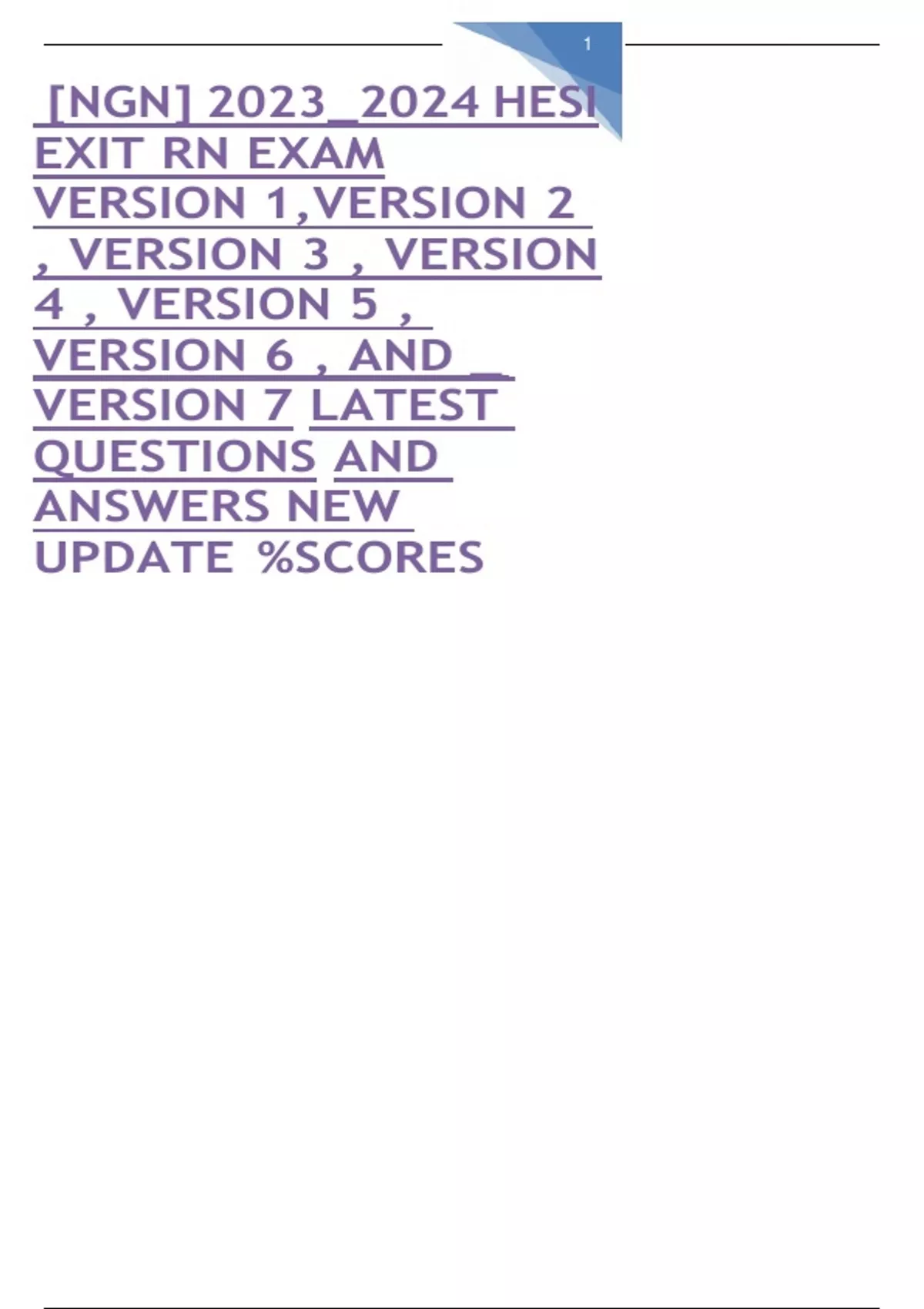 1 Exam (elaborations) [NGN] 2023_2024 HESI EXIT RN EXAM VERSION 1,VERSION 2 , VERSION 3 , VERSION 4 , VERSION 5 , VERSION 6 , AND _ VERSION 7 LATEST QUESTIONS AND ANSWERS NEW UPDATE %SCORES 2 Exam (elaborations) 2025/ Real Hesi Pharmacology Ngn Hesi Rn Pharmacology Real Exams (4 Versions ] Rn Hesi Pharmacology With Ngn Latest 4 Versions 2025/2026