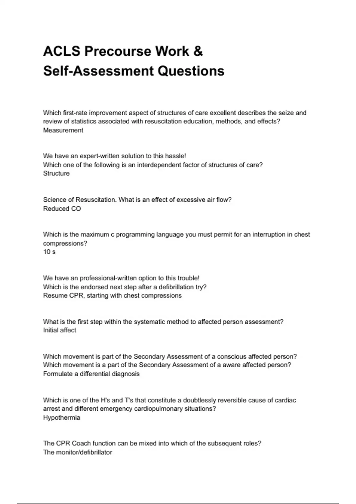 ACLS Precourse Work Exams NEWEST 2025/2026 ACTUAL EXAM COMPLETE QUESTIONS AND CORRECT DETAILED ANSWERS (VERIFIED ANSWERS) |ALREADY GRADED A+||BRAND NEW!! (ALL BUNDLED HERE!!!)