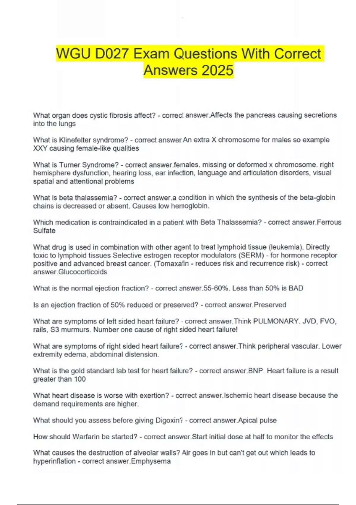 D027 PATHOPHARMACOLOGY EXAM QUESTIONS WITH CORRECT ANSWERS 2025WGU D027 OA Remediation (Michelle s Version) Exam Questions With Correct Answers 2025 UpdateD027 Practice Questions With Completely Detailed Answers Graded A+ Latest 2025D027 Practice Test 2 Questions And Answers 100% Correct Graded A+ Latest 2025