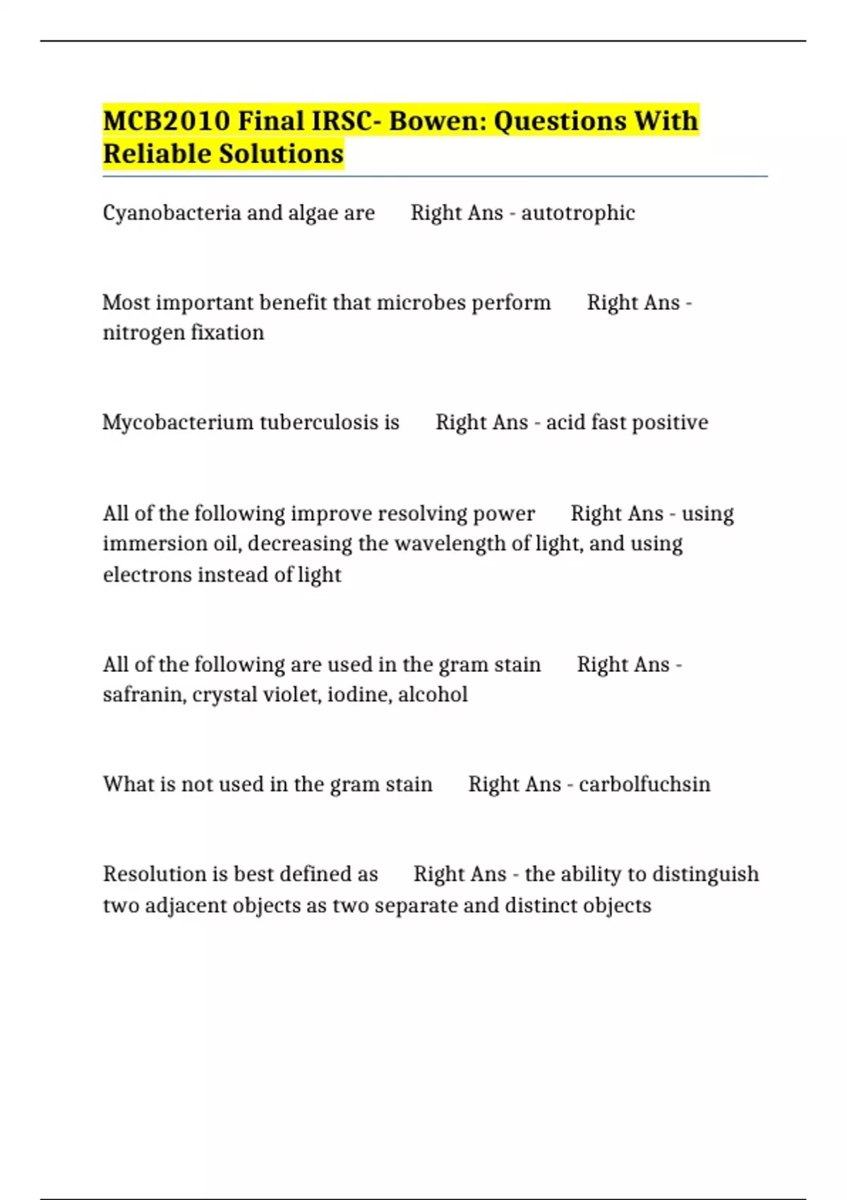 BUNDLE:- IRSC MCB2010 EXAMS