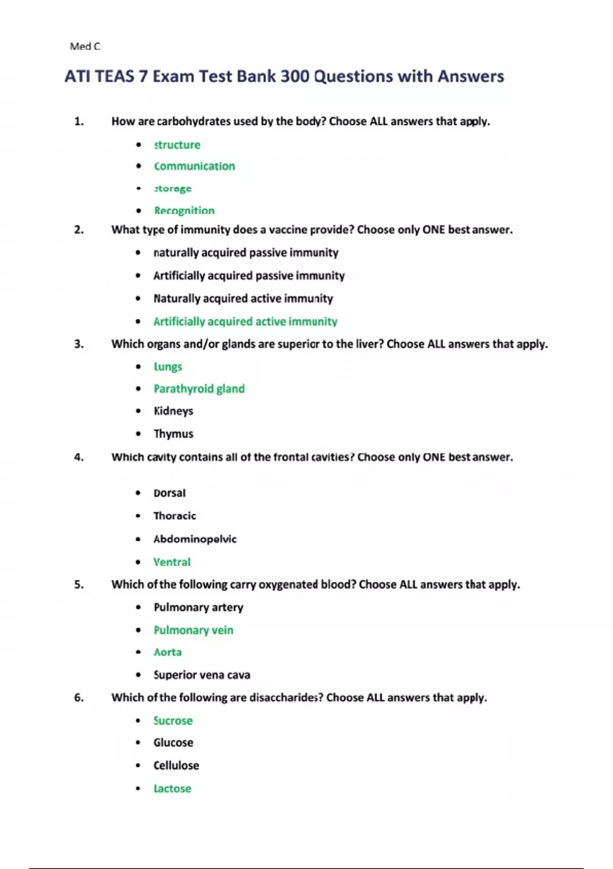 ATI TEAS 7 EXAM QUESTIONS AND ANSWERS