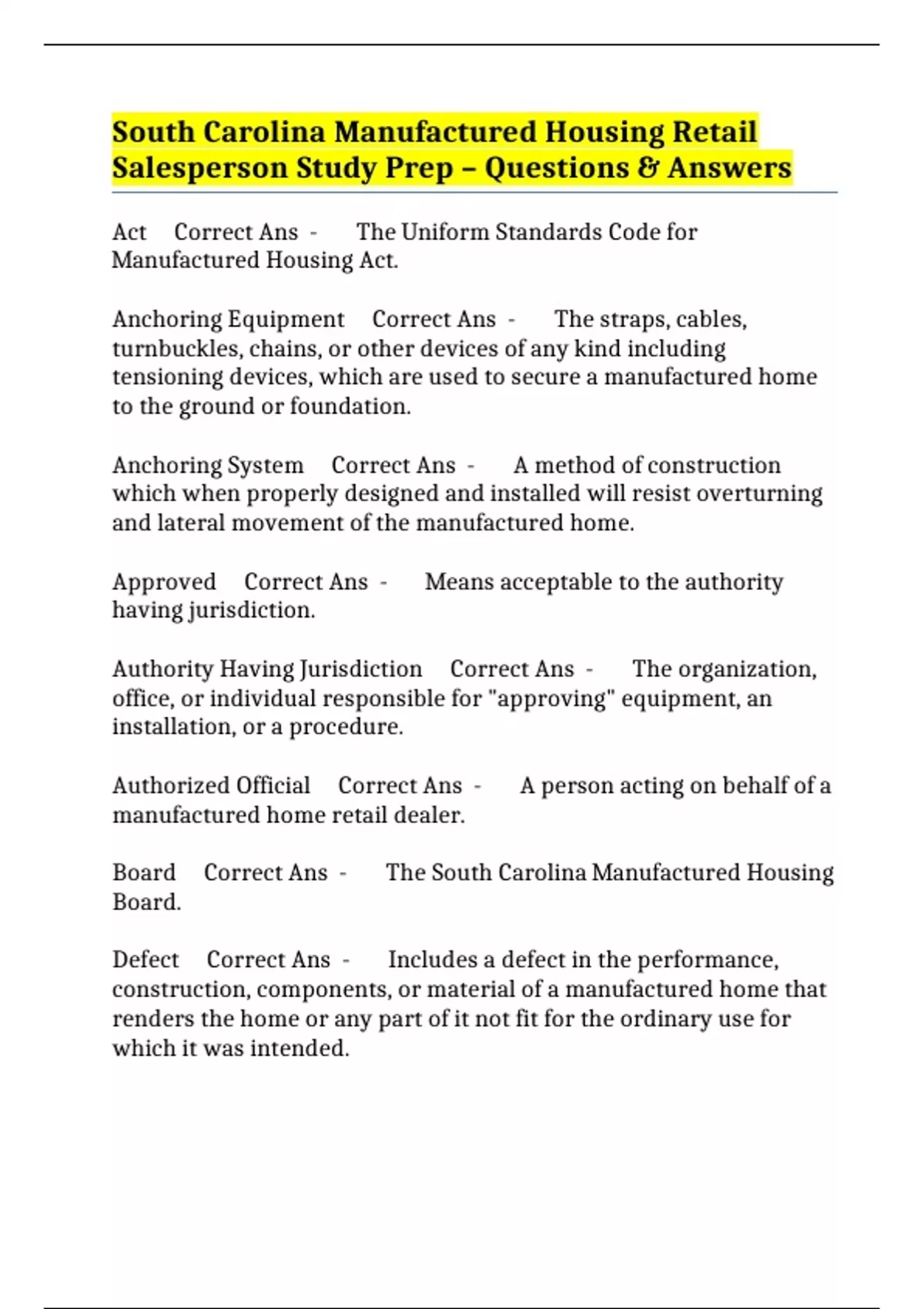 BUNDLE::- MANUFACTURED HOUSING EXAMS