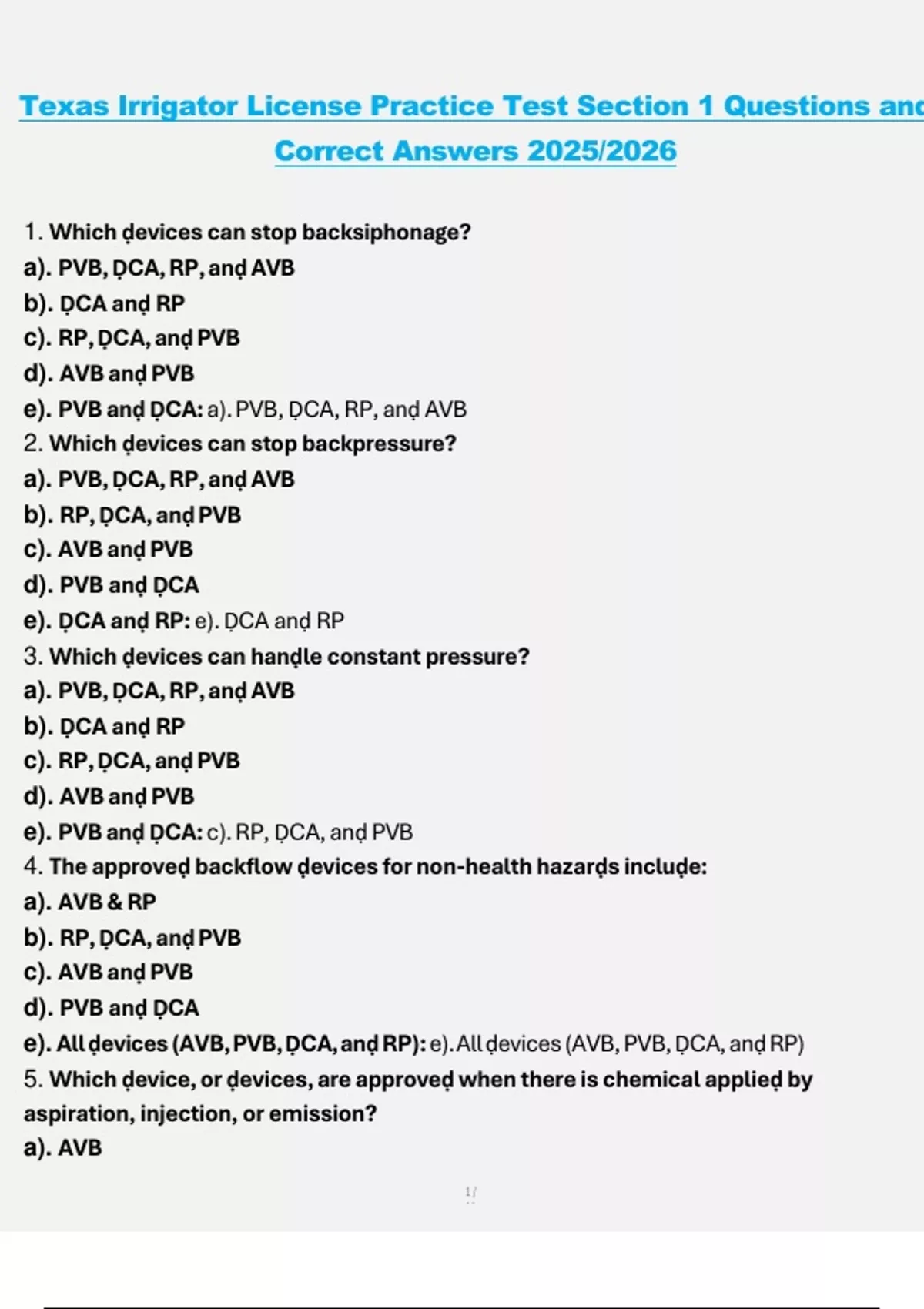 Exam practice test for Texas Irrigator License Actual Questions and Answers 2025/2026 Texas Irrigation State Exam 2 Practice Test Questions and Correct Answers 2025/2026 Texas Irrigation License Exam Review (2025/2026) Questions and Correct Answers TCEQ Irrigator Study Guide New 2025/2026 Questions and 100% Verified Answers Texas Irrigator License