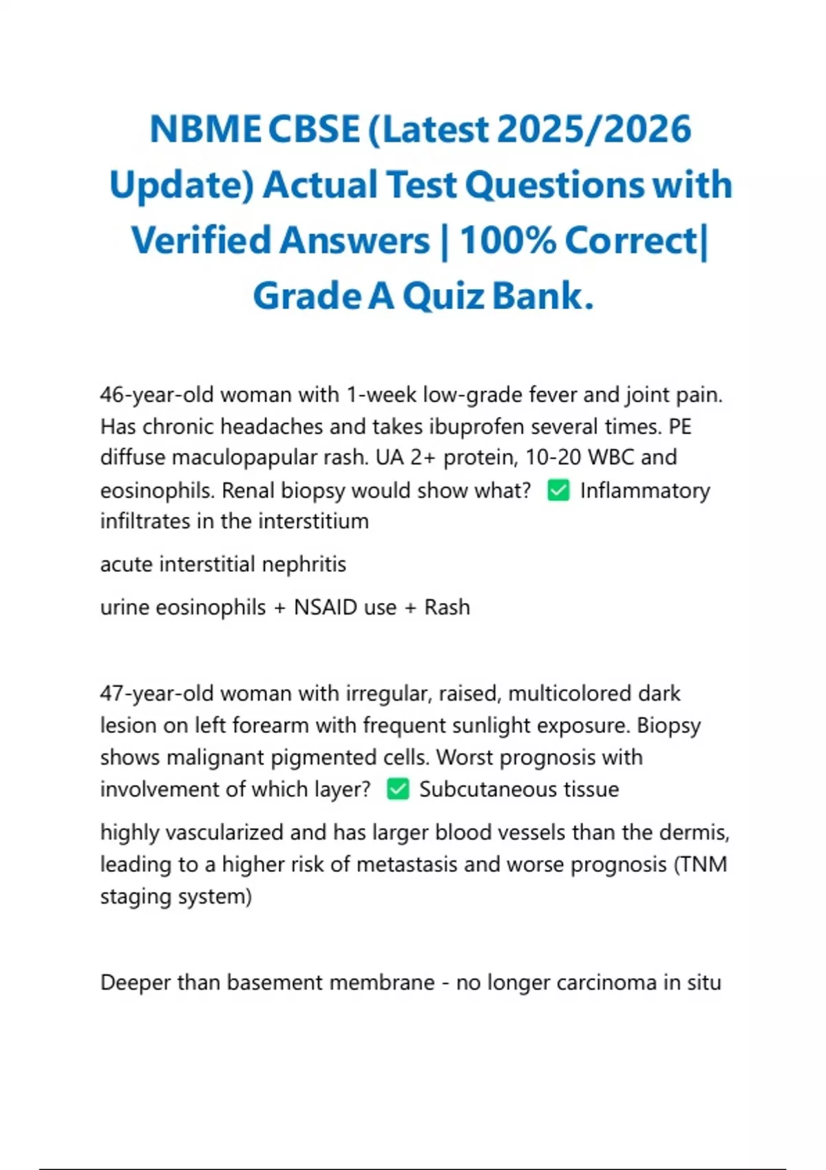 NBME (National Board of Medical Examiners) Full solutions PACKAGE DEAL| BUNDLE contains the Latest 2025/2026 NBME exams solutions with verified Answers - Guaranteed Success.