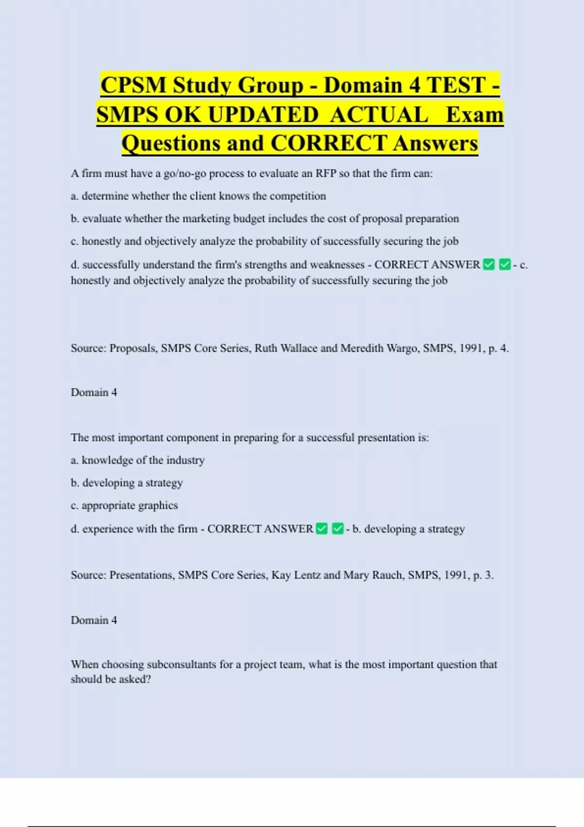 SMPS CPSM - Domain 4 Multiple UPDATED ACTUAL Exam Questions and CORRECT Answers